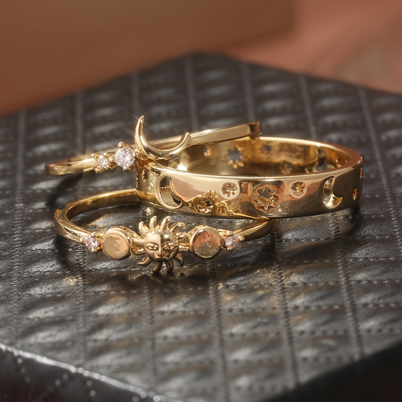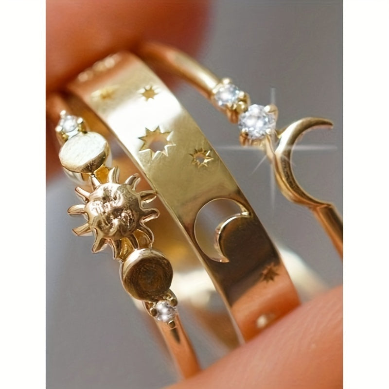 • Set of 3 rings with crescent moon and zirconia details