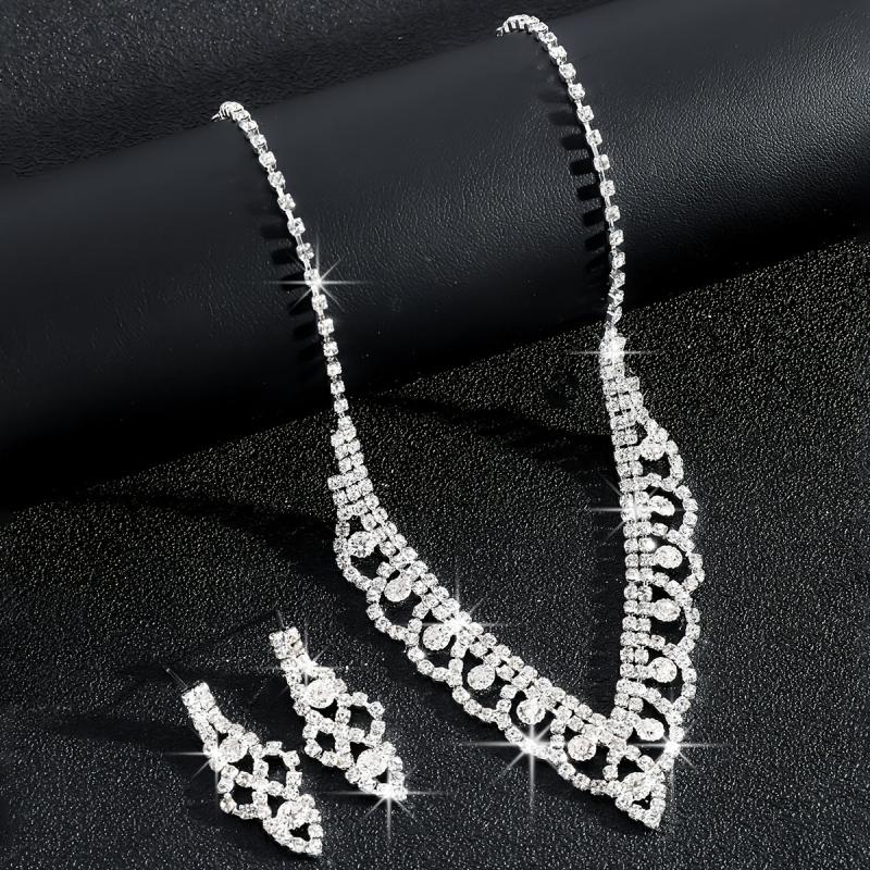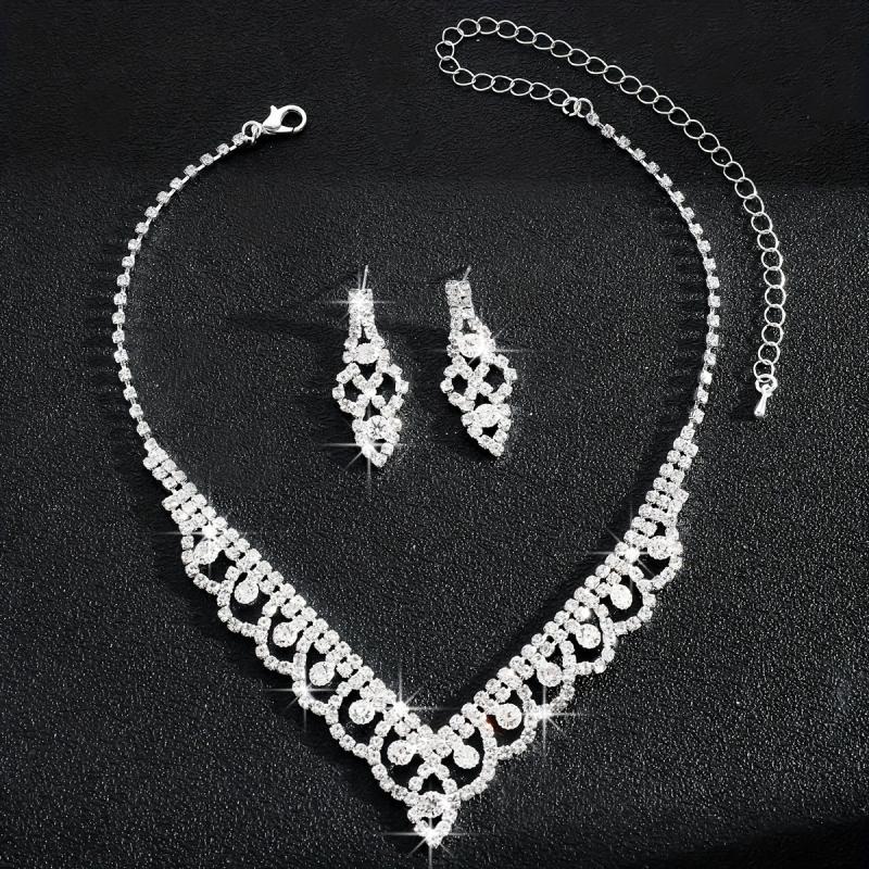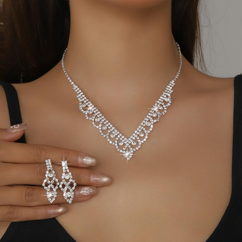 Stunning set with rhinestone petals, copper base and golden plating. Perfect for everyday elegance or special events.