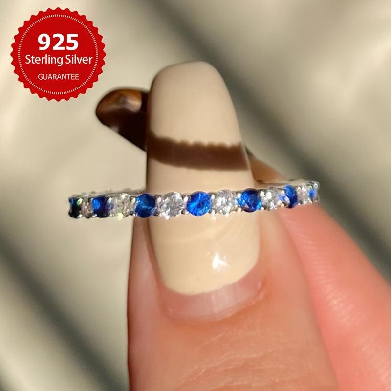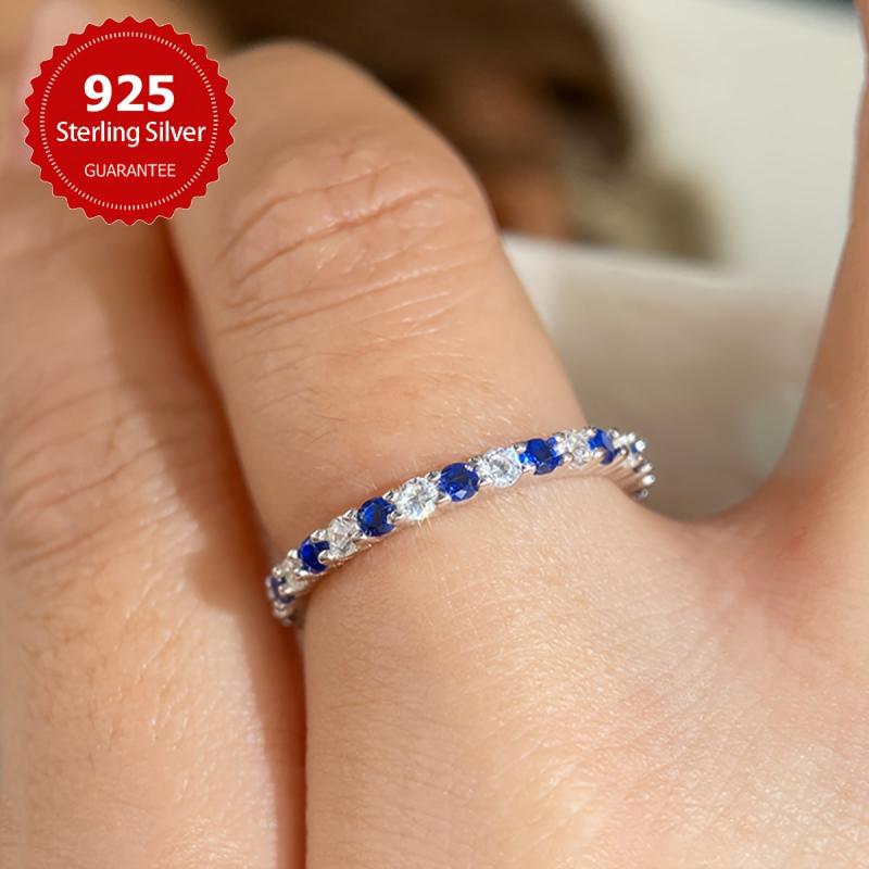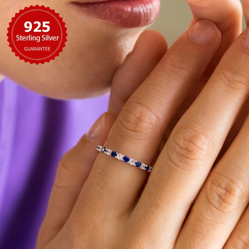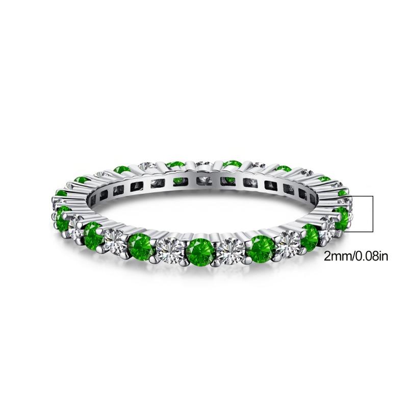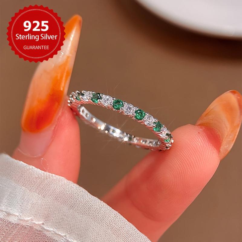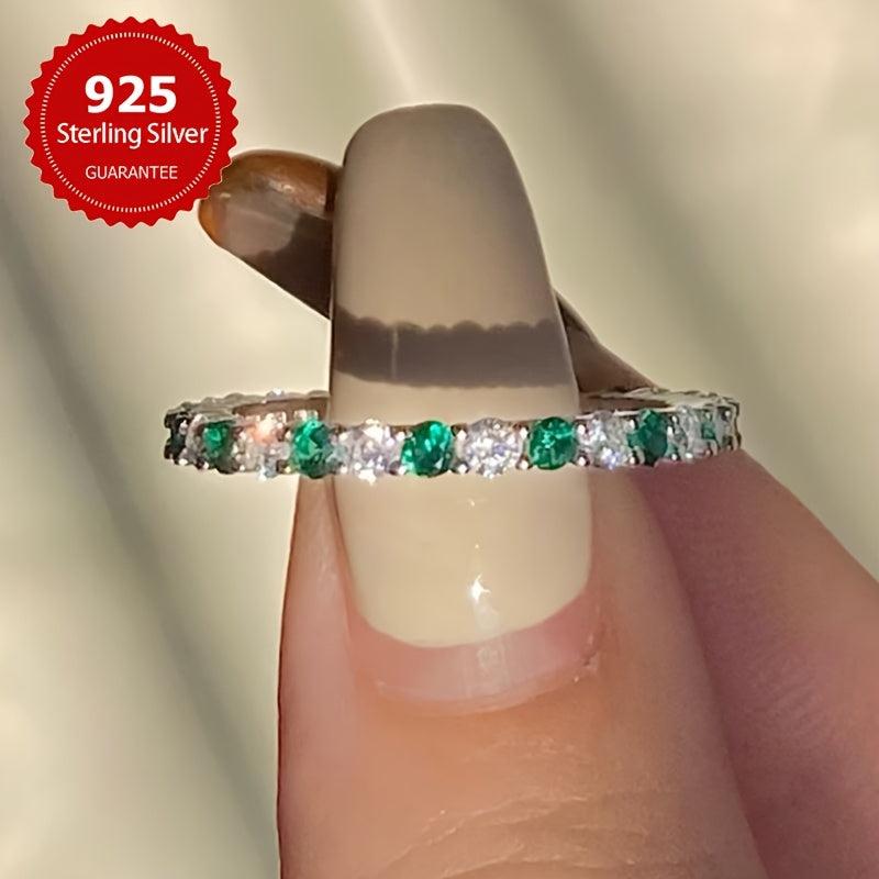 Dainty Green Zirconia Ring 925 Sterling Silver Eternity Band Jewelry for Women