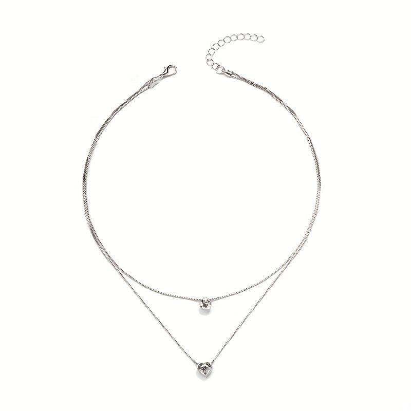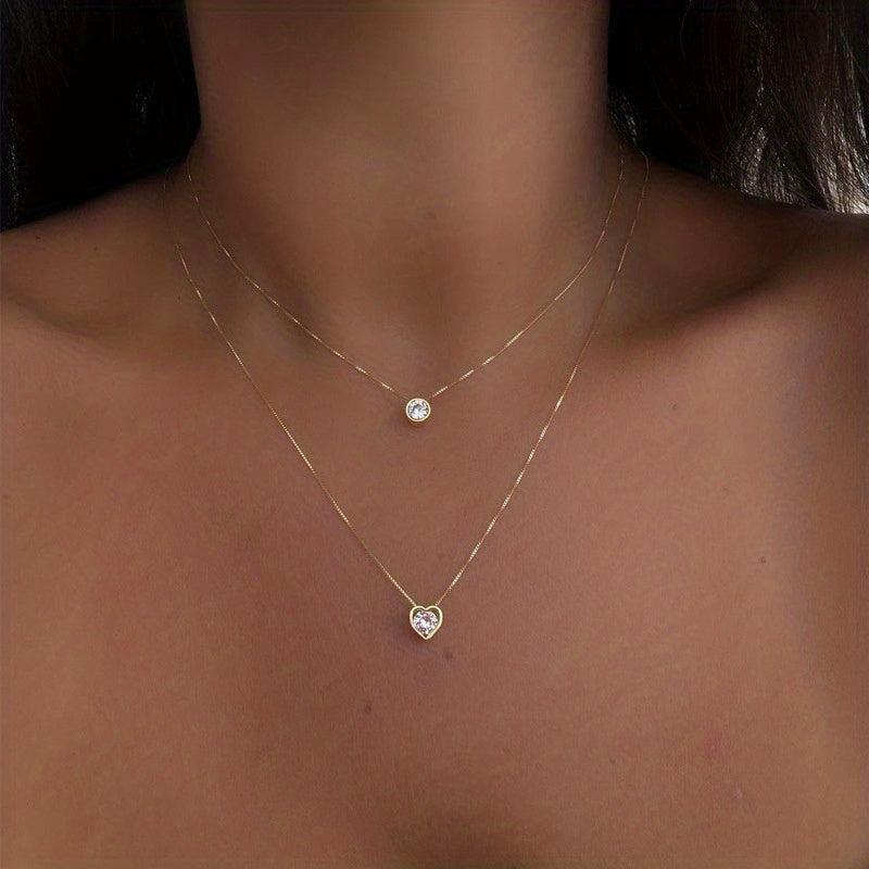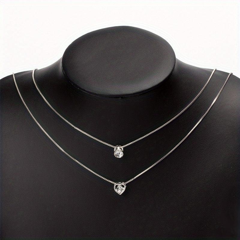 Add a touch of elegance to your casual attire with this sparkling double heart pendant necklace featuring high-quality cubic zirconia. Made from durable zinc alloy, this necklace is perfect for daily wear.
