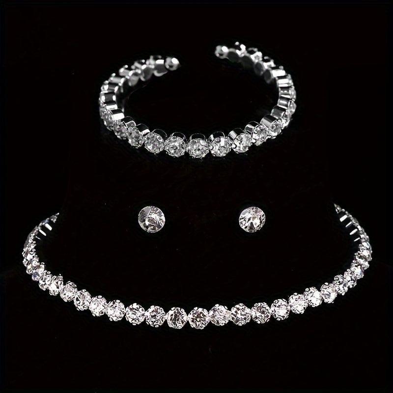 Complete your bridal look with this stylish jewelry set featuring a necklace, earrings, and bracelet. Perfect for brides looking for a touch of sophistication and elegance on their special day.