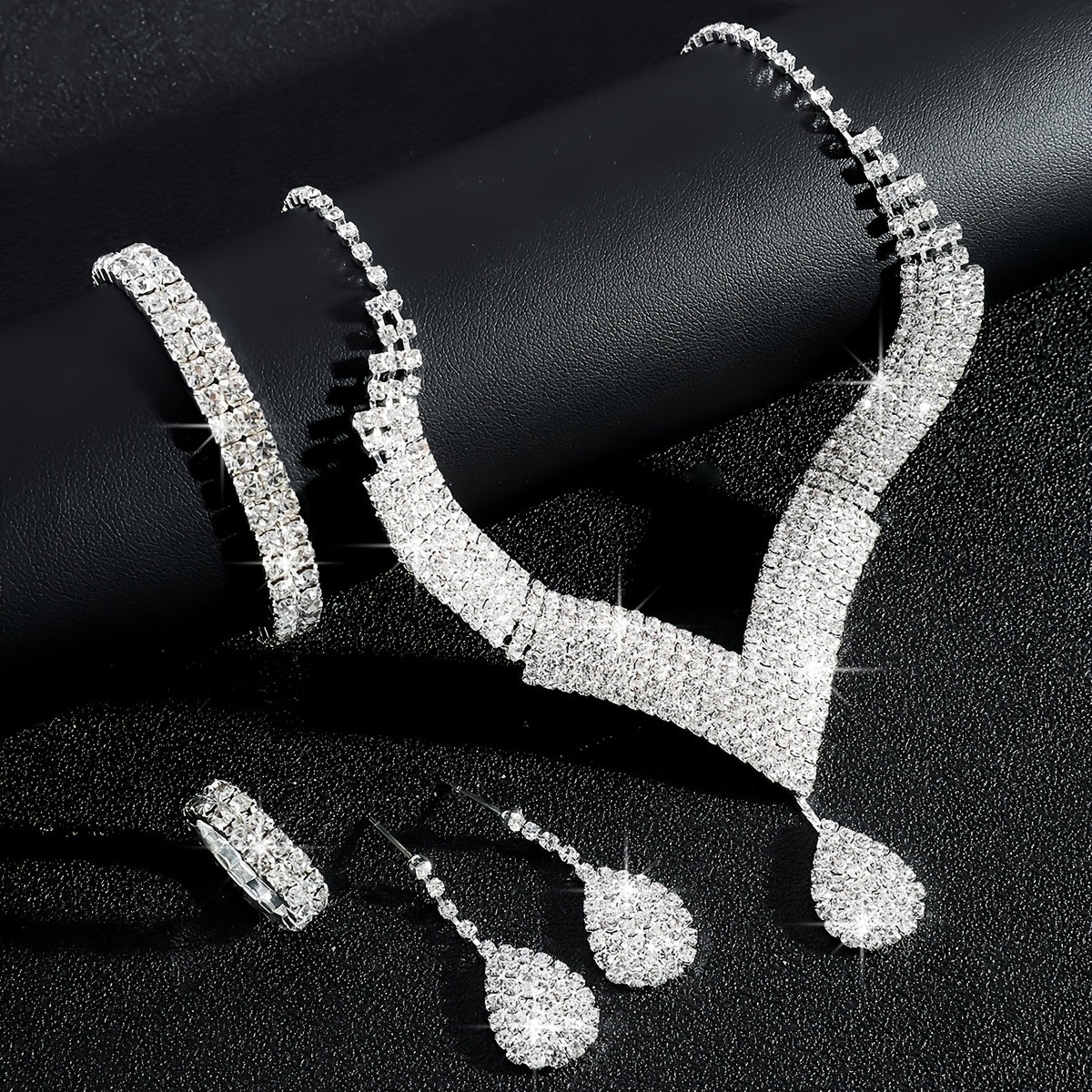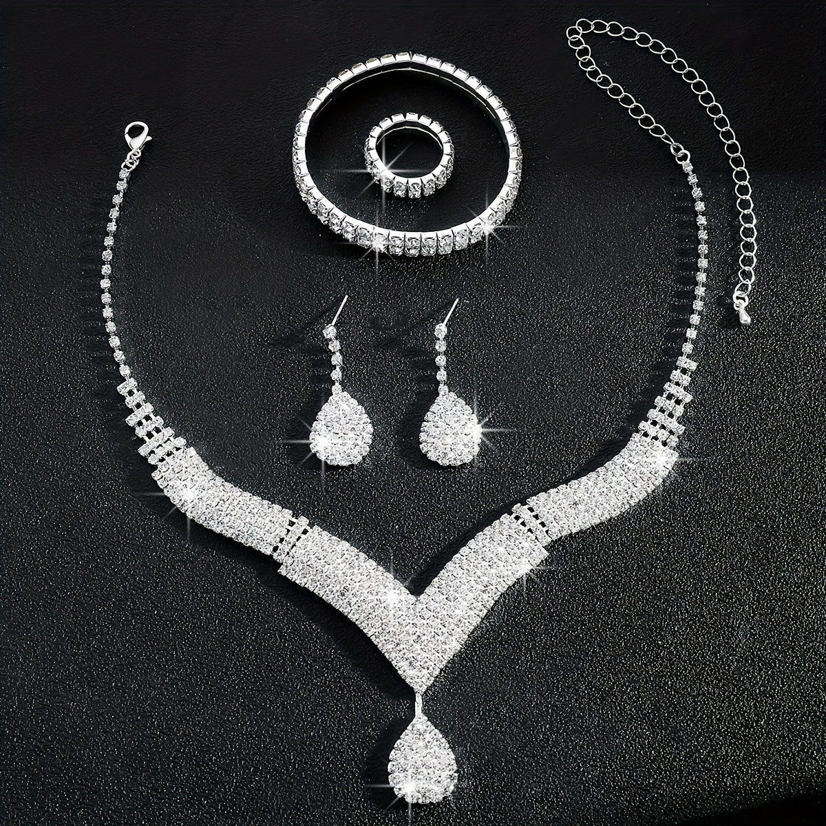 Elegant V-Shaped Teardrop Jewelry Set with Rhinestones