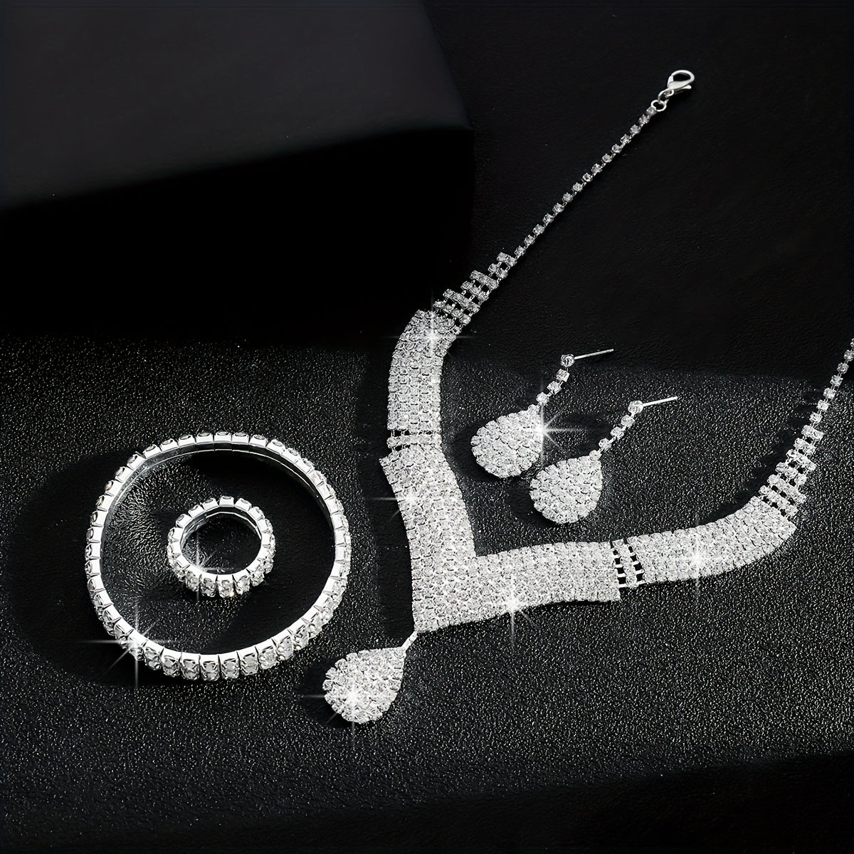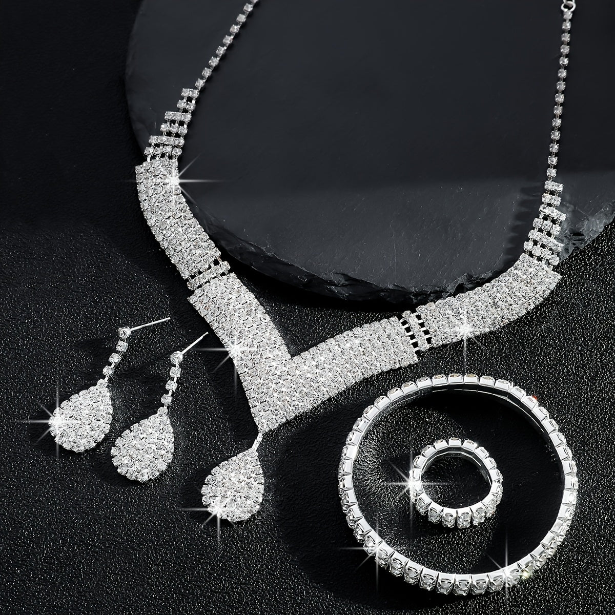 This stunning jewelry set is perfect for brides and weddings, featuring a sophisticated plated design with sparkling rhinestones.