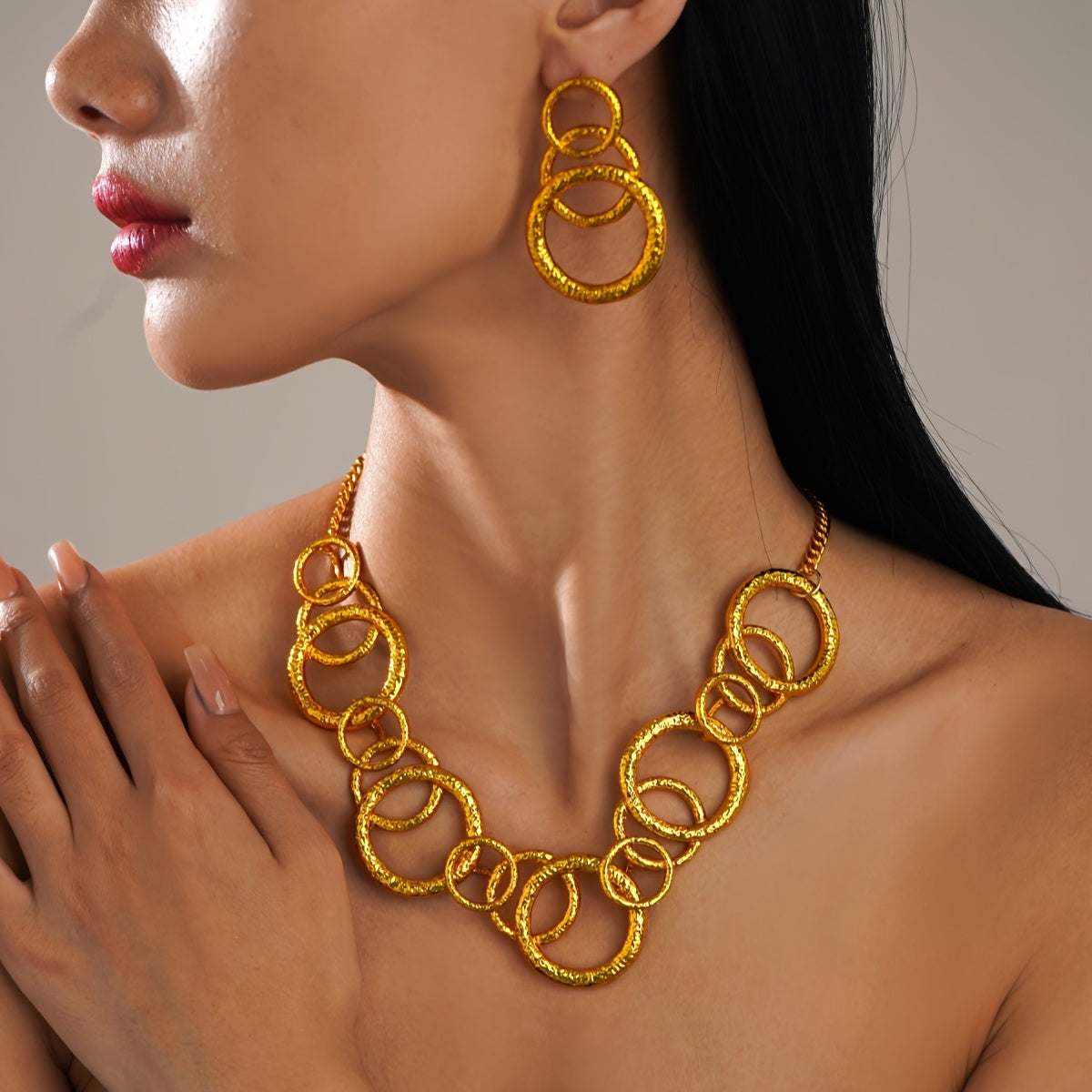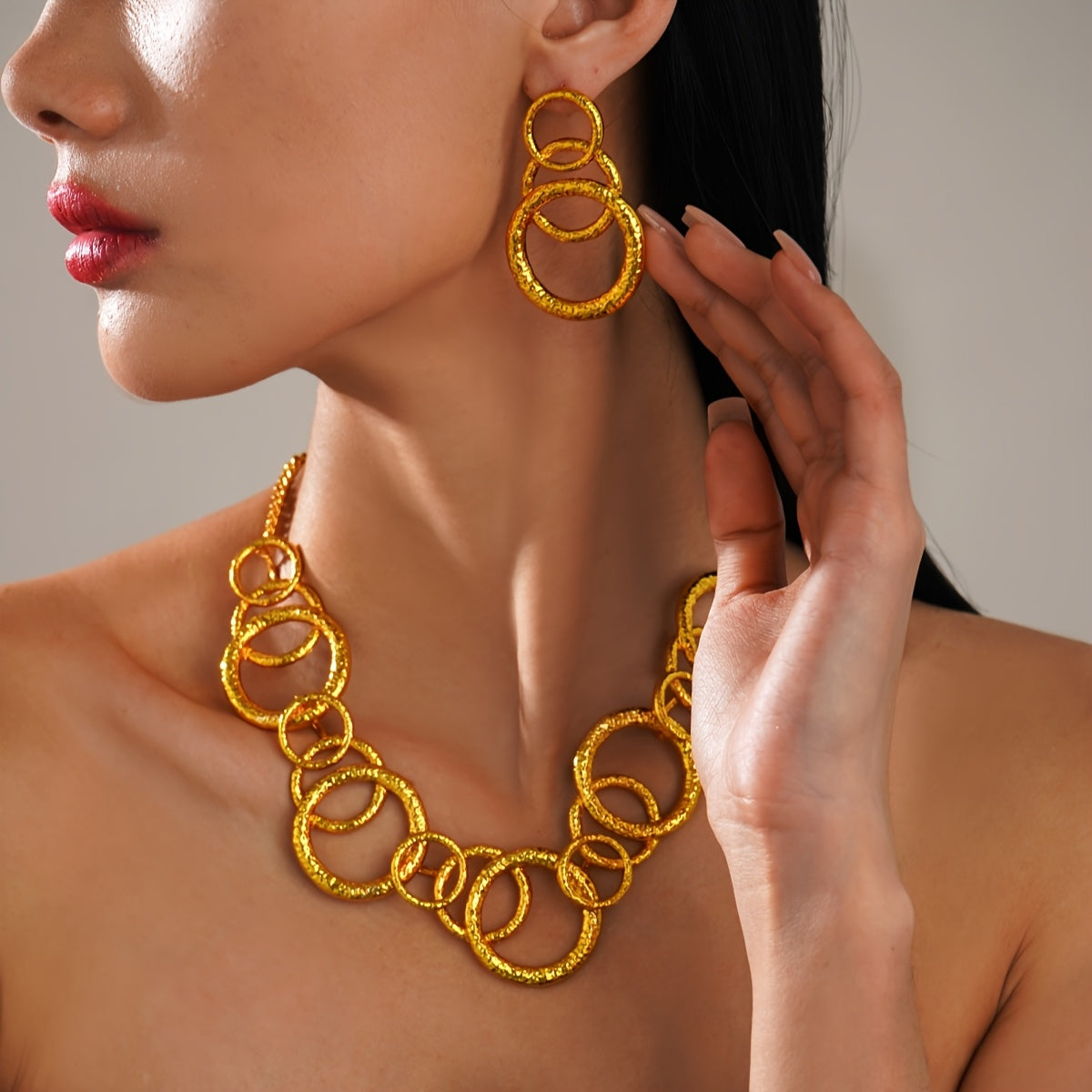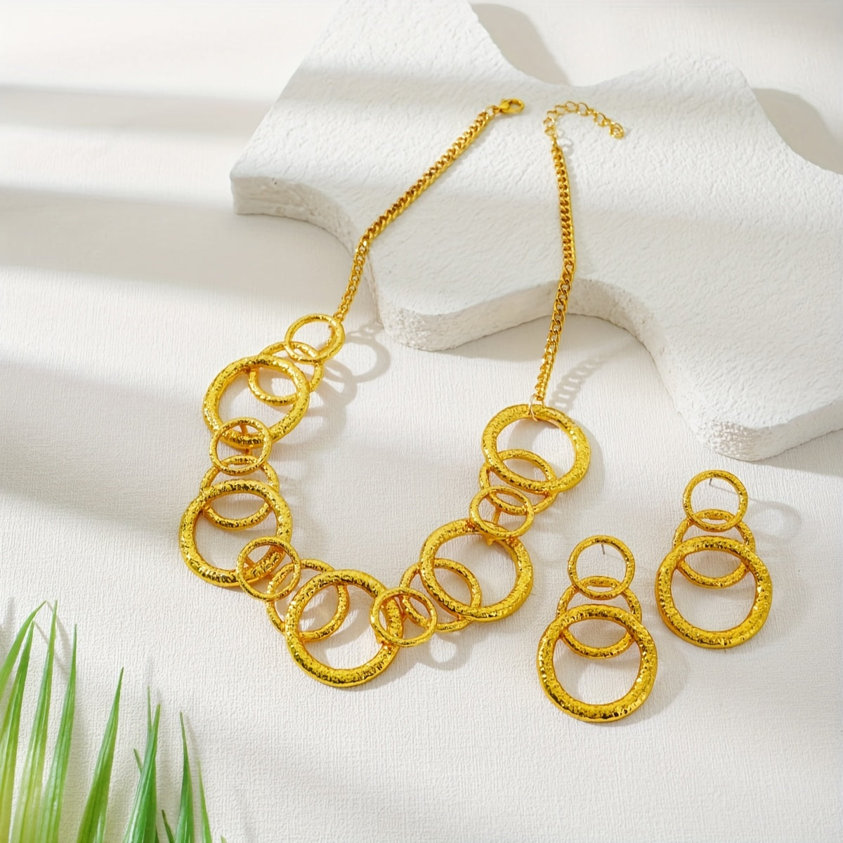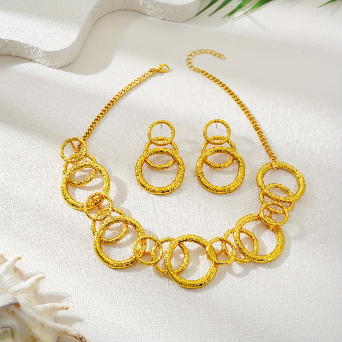 Upgrade your style with this fashionable set of round stacking earrings and necklace. Perfect for daily wear and parties, ideal for gifting to friends.