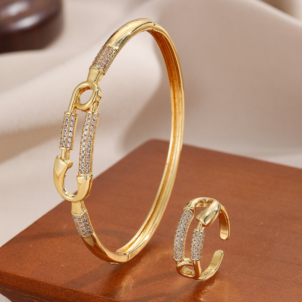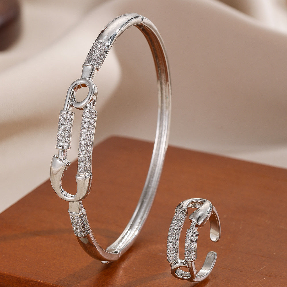 Elevate your style with this two-piece set featuring a fashionable pin bracelet and ring, perfect for parties and Thanksgiving celebrations.