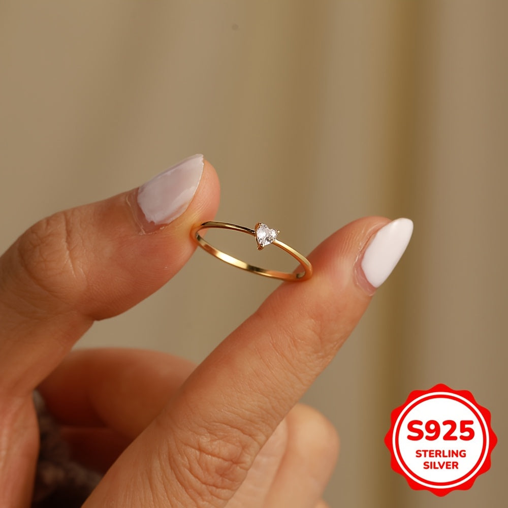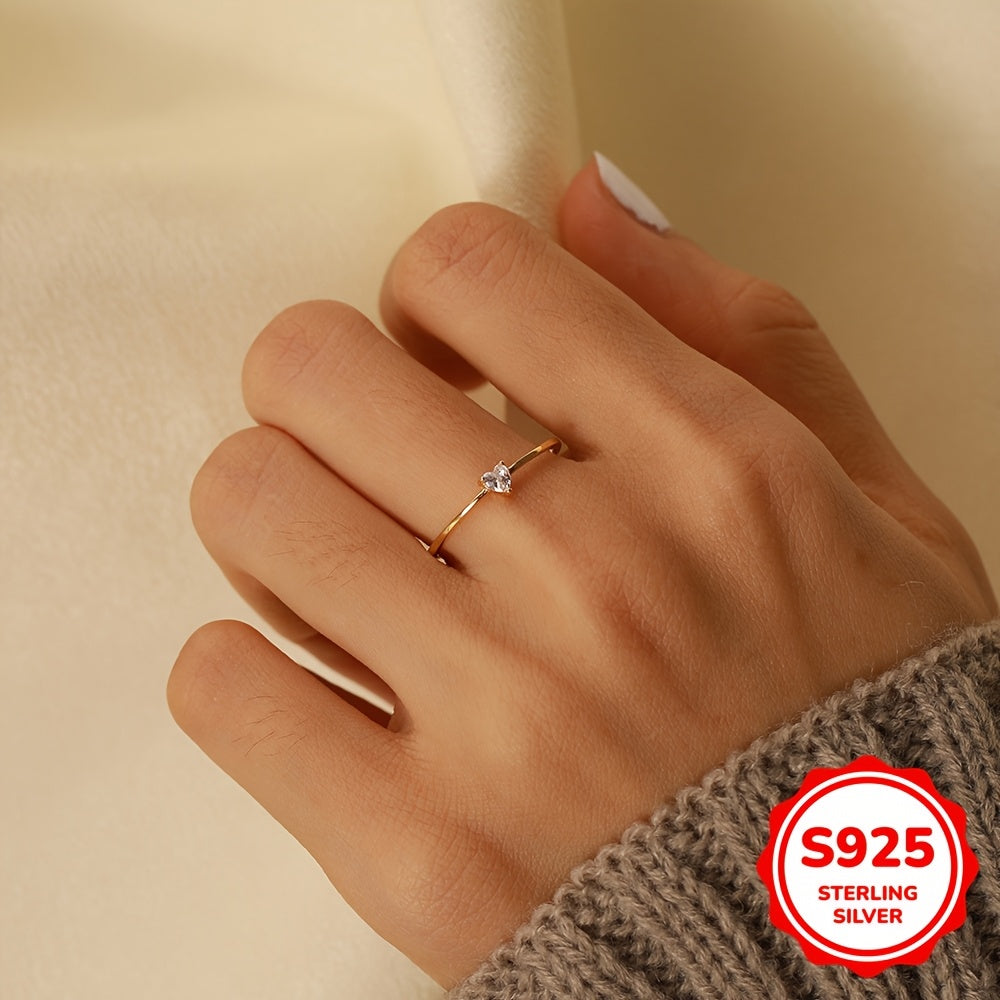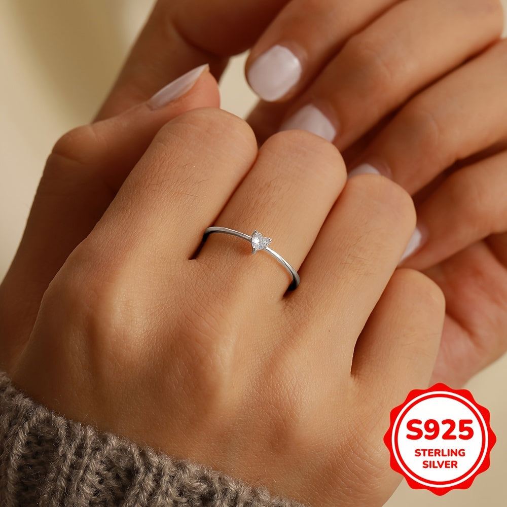 Add a touch of elegance to your look with this stunning S925 sterling silver heart ring set with a single synthetic Zirconia heart. Perfect for everyday wear or special occasions.