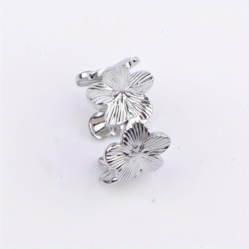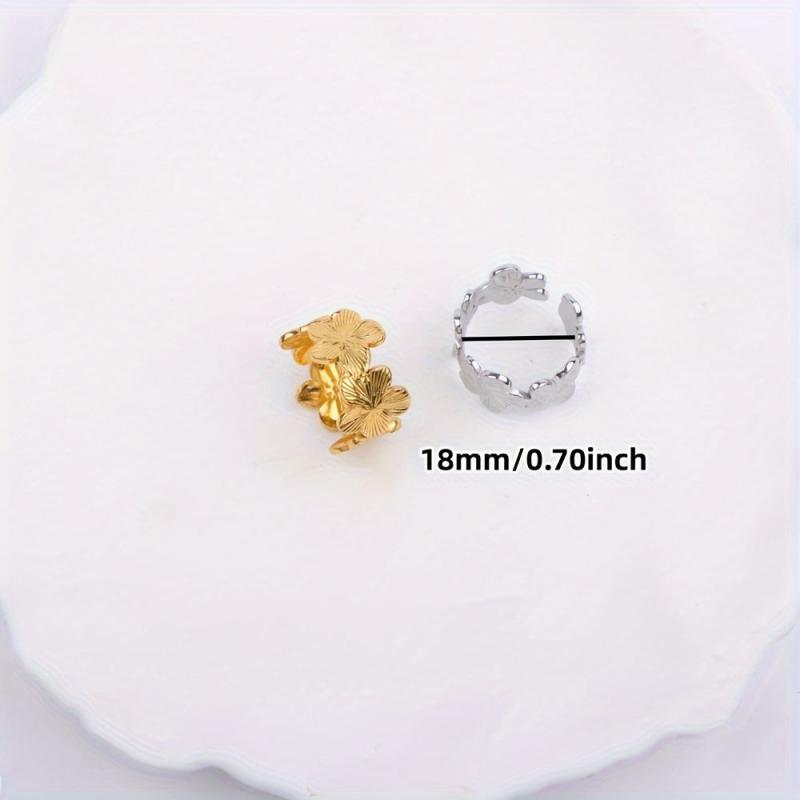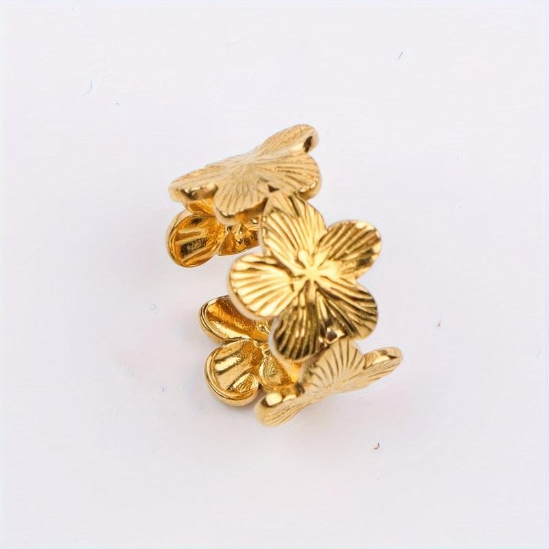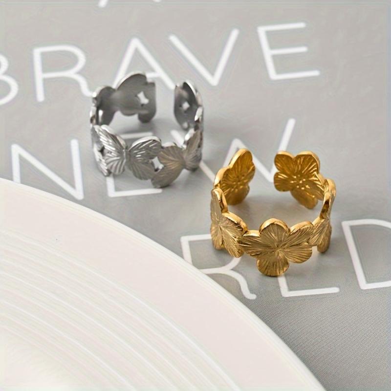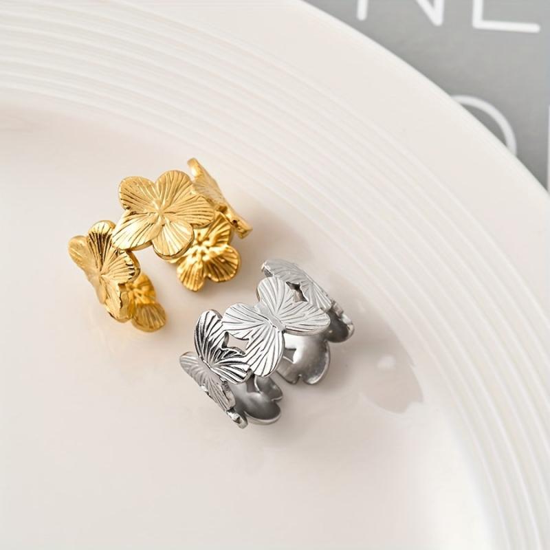 This stainless steel open ring features a charming floral and butterfly design, perfect for parties or daily wear. It's a romantic gift for women that combines elegance with style.