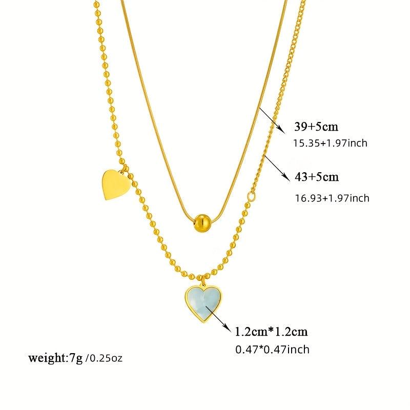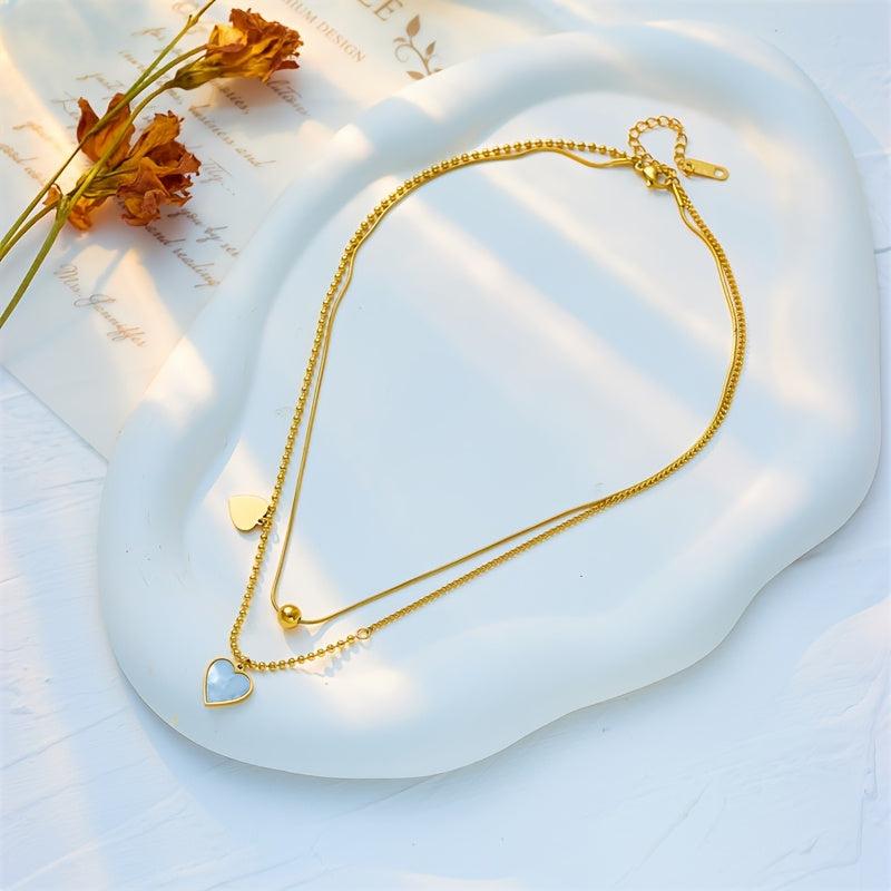 Elegant double layer necklace with a golden stainless steel heart pendant inspired by French design.