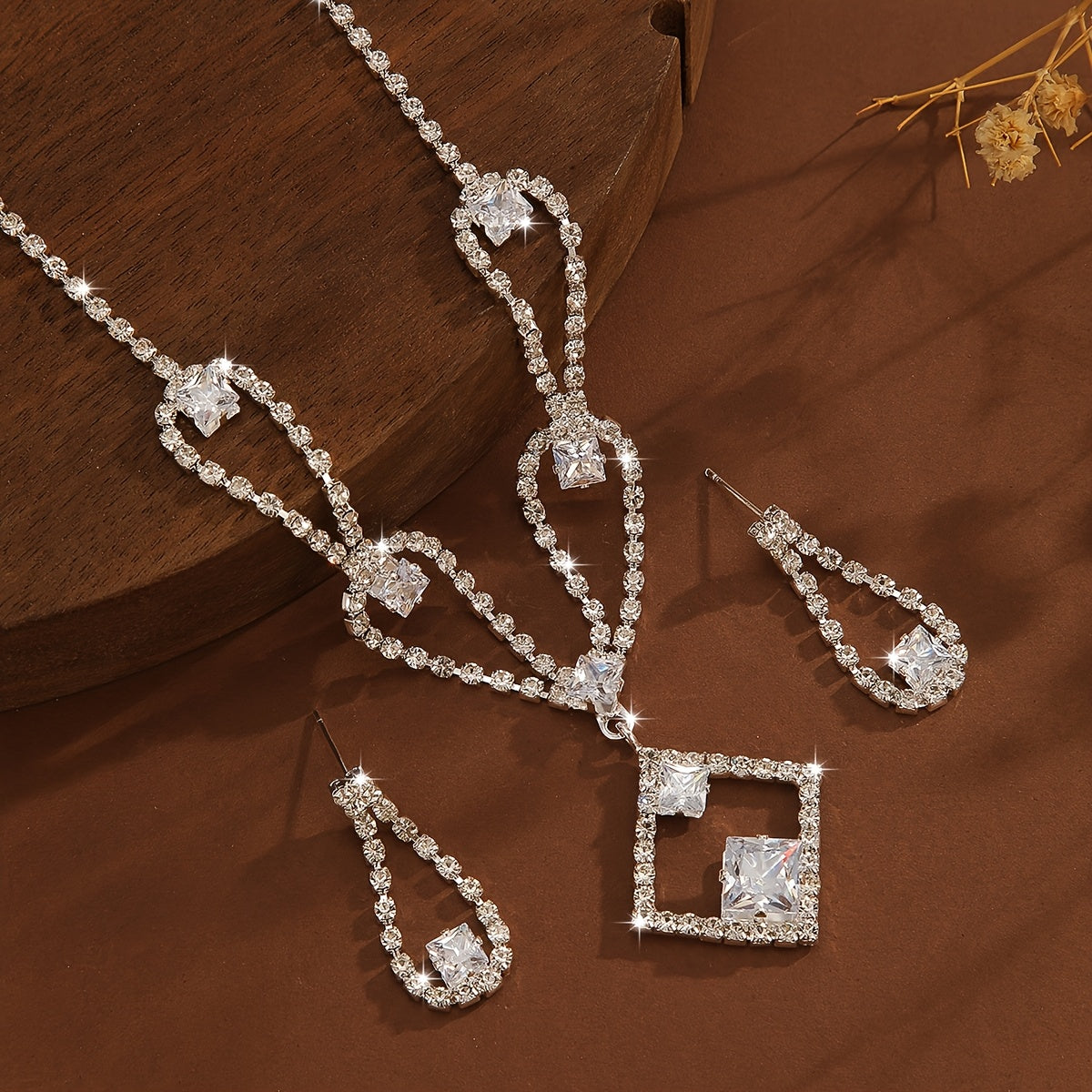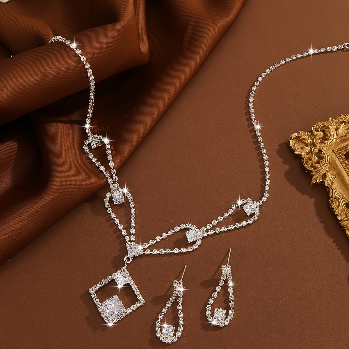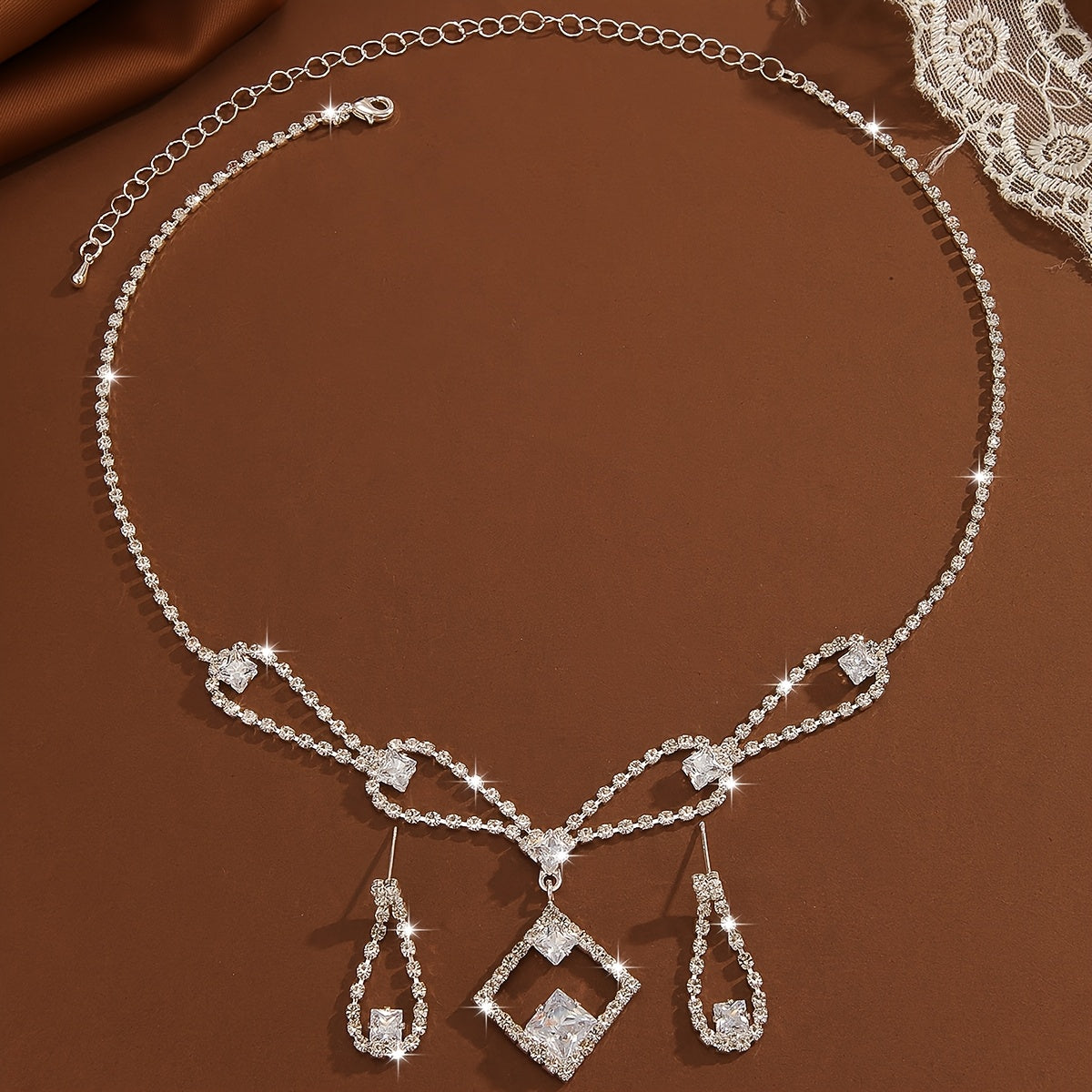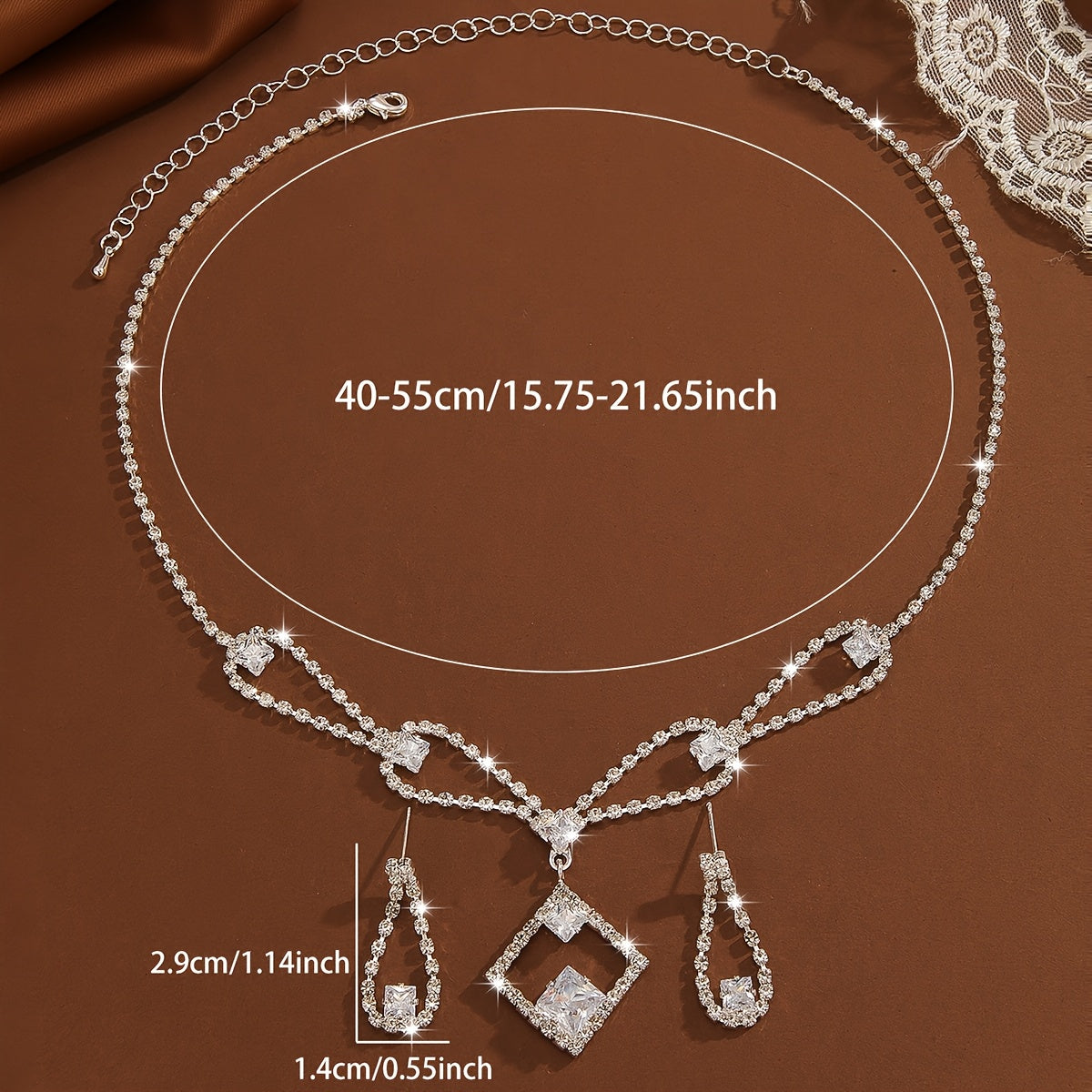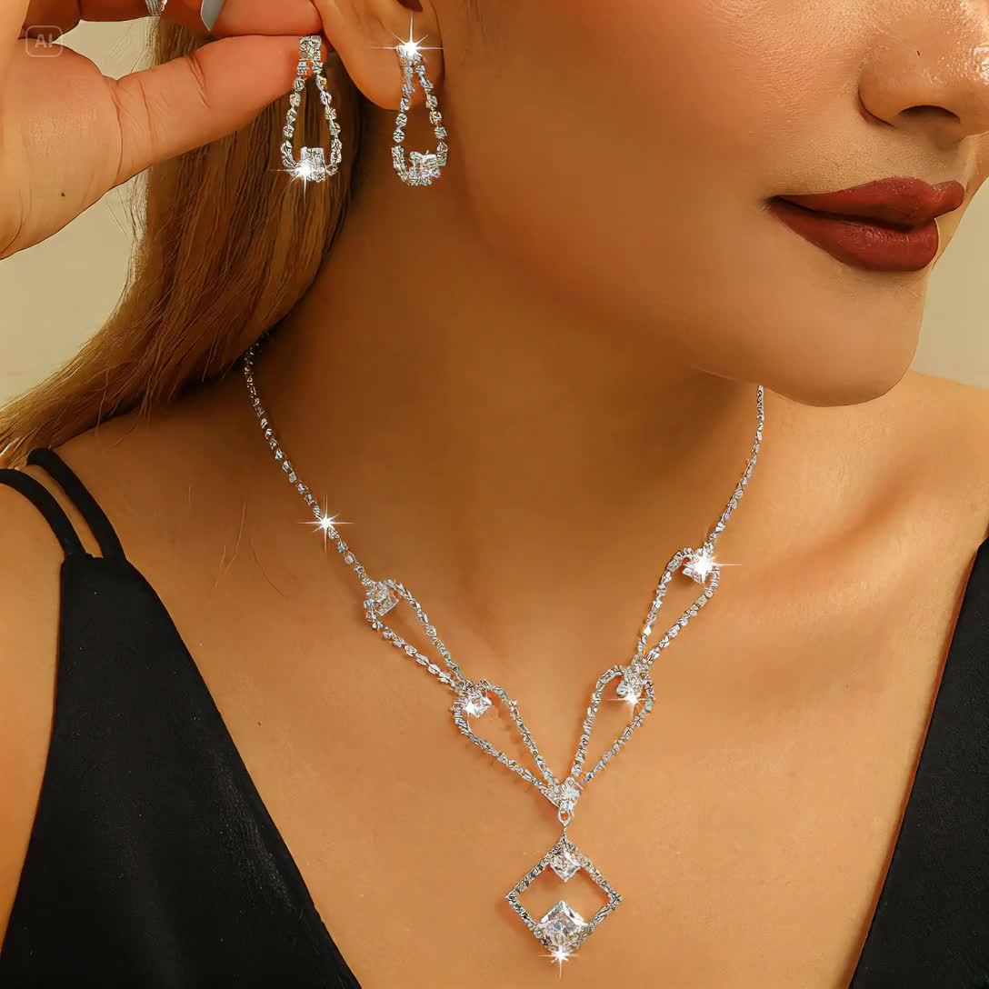French Style Infinity Necklace and Earrings Set with Zirconia Silver Plated