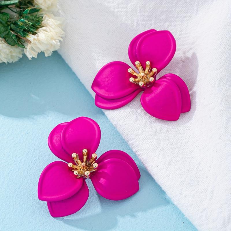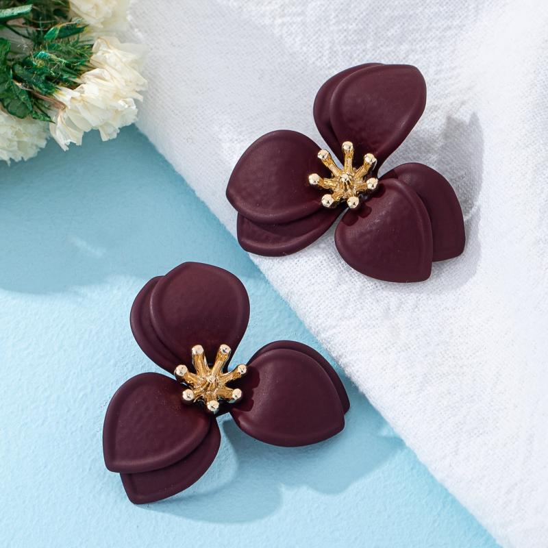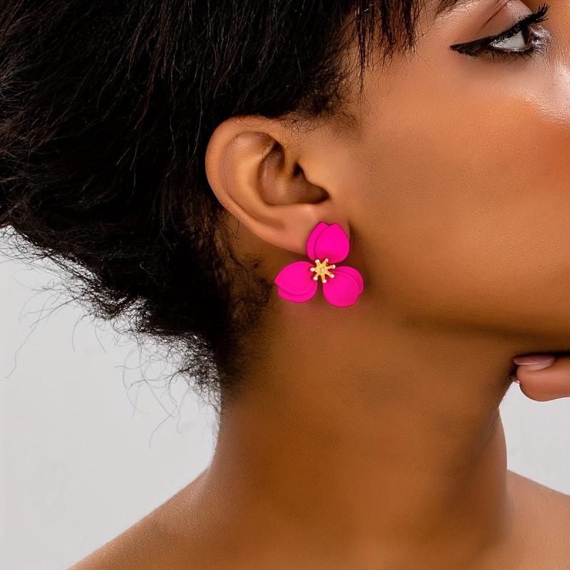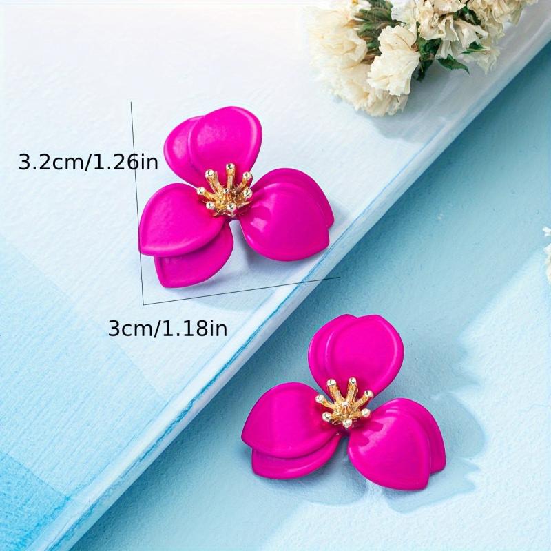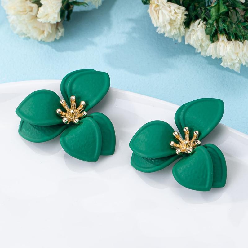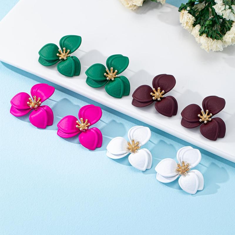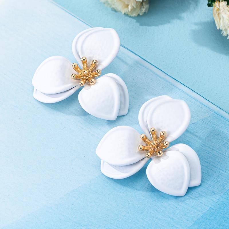 These stylish ear studs feature a geometric floral design with golden tone accents. They are versatile for daily wear or parties all year round.