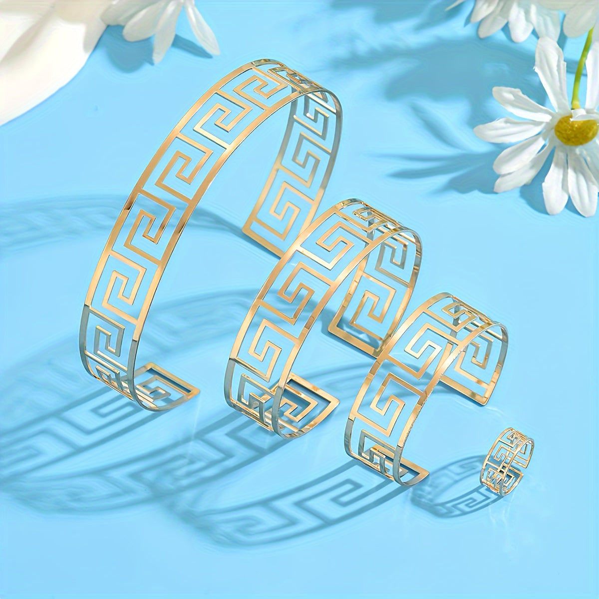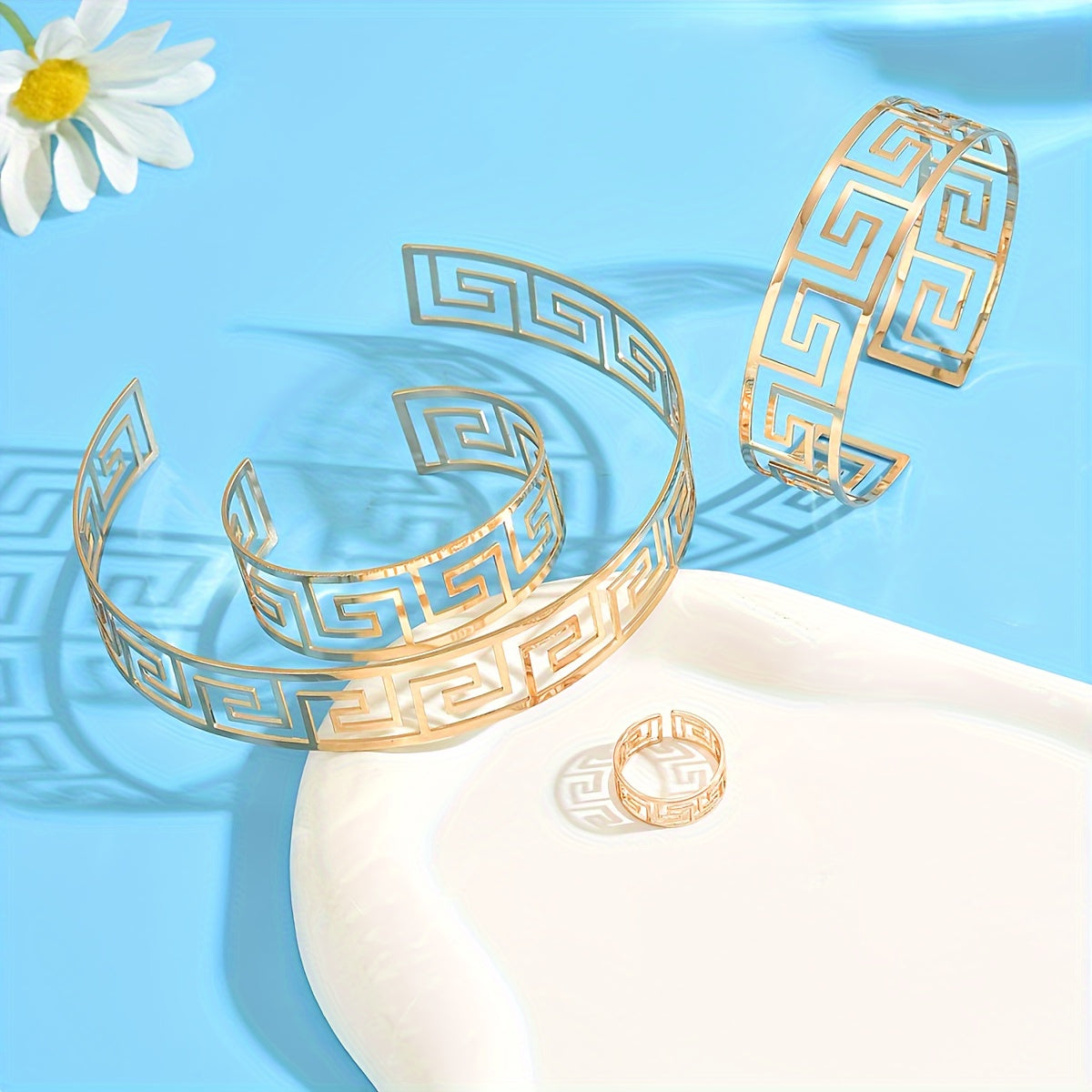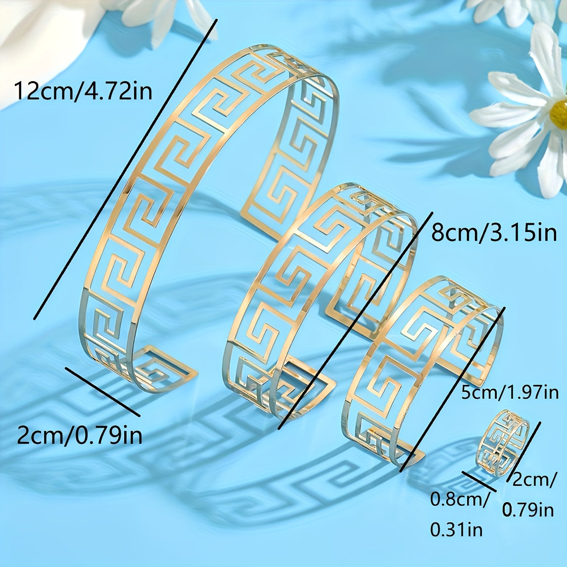 This classic 4-piece jewelry set features a repeating geometric hollow out pattern. Perfect for daily wear or party occasions.