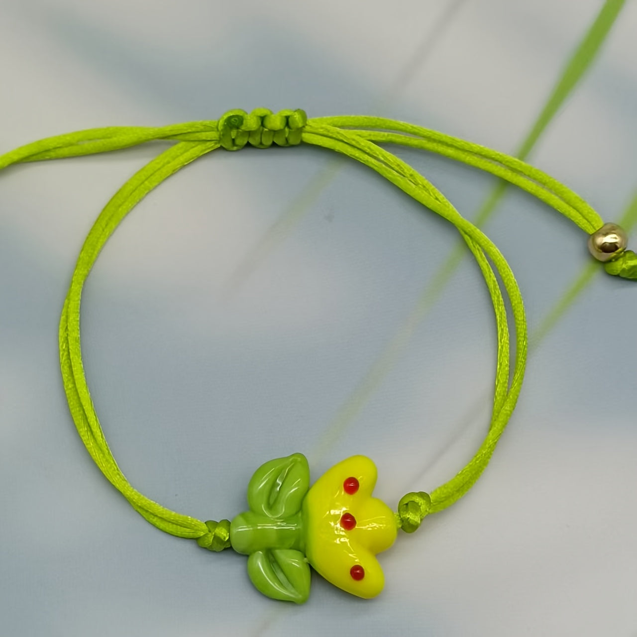 Add a touch of whimsy to your summer outfits with this lightweight bracelet. Featuring a charming yellow flower charm and vibrant green beads, this accessory is perfect for casual outings.