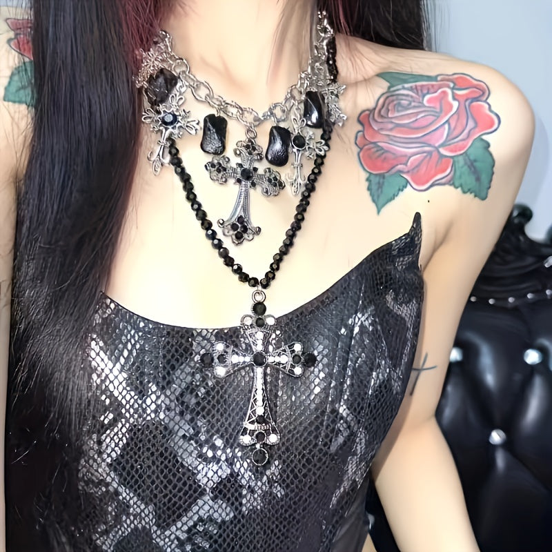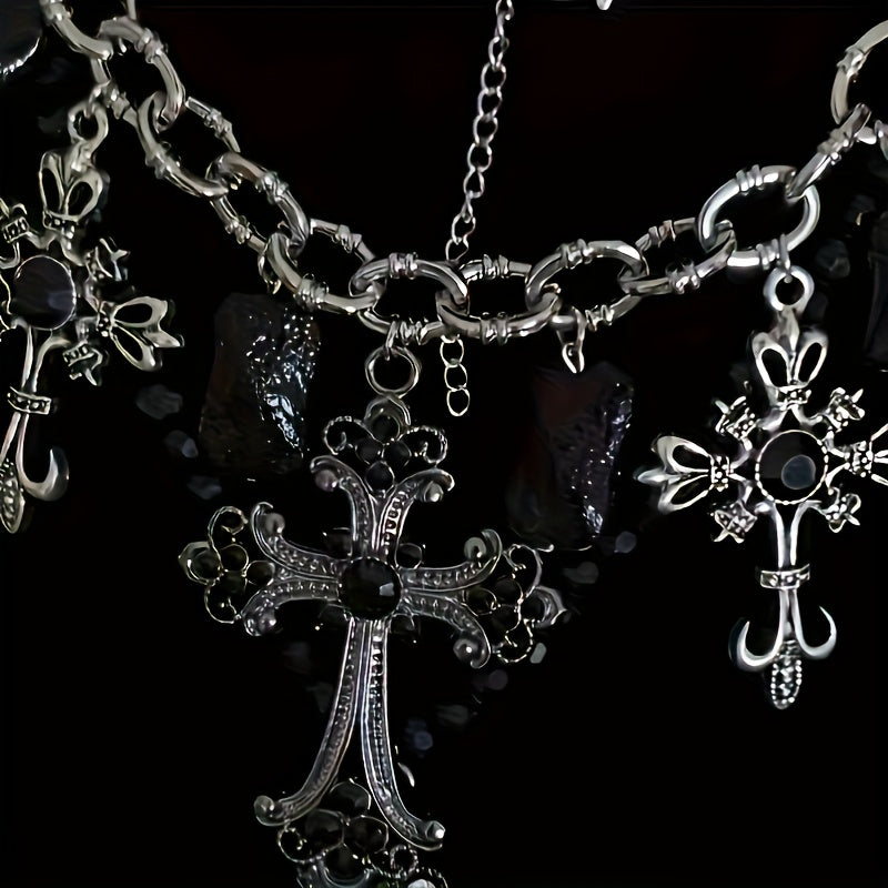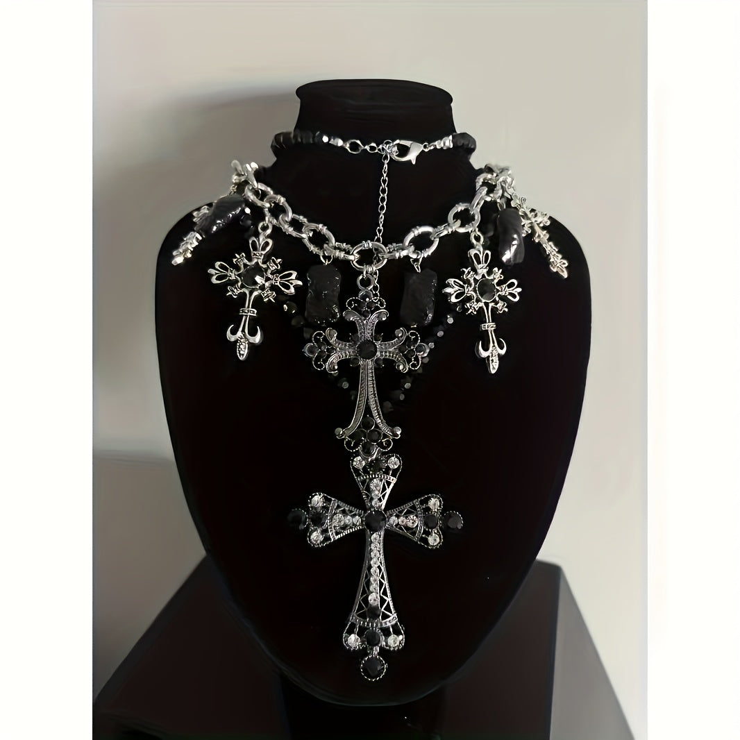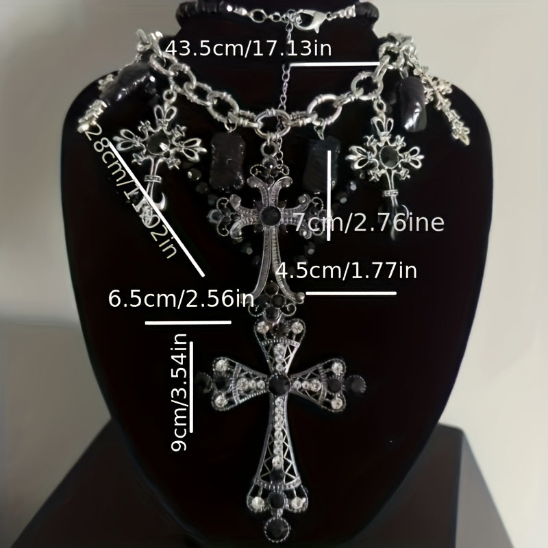 This necklace set features a gothic punk cross pendant design with a vintage Y style. Made from zinc alloy with synthetic stones, it adds a unique touch to your outfit.