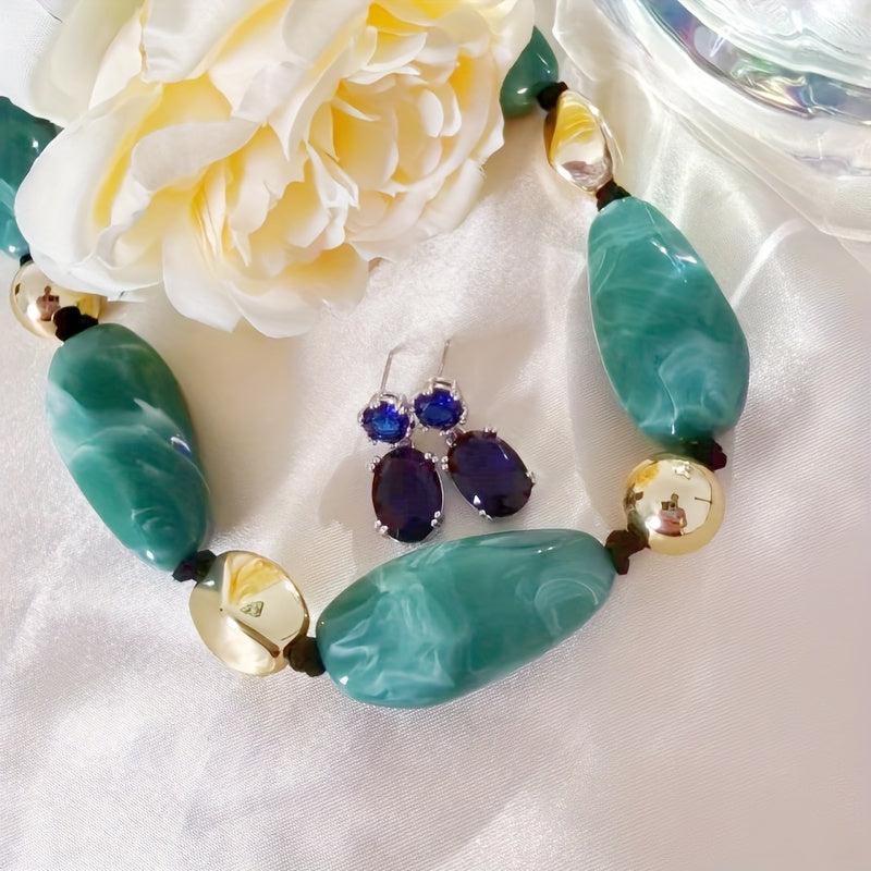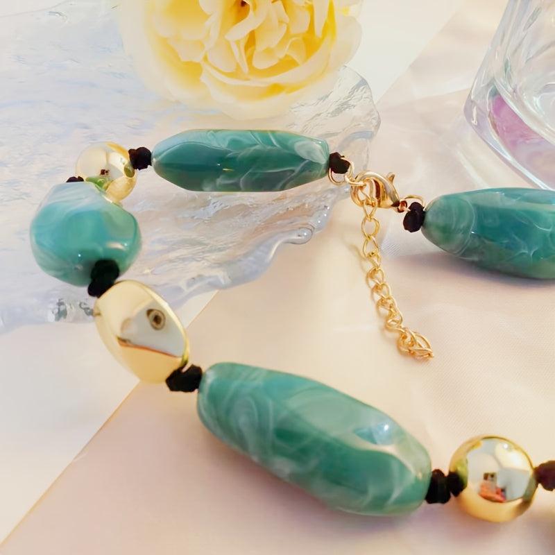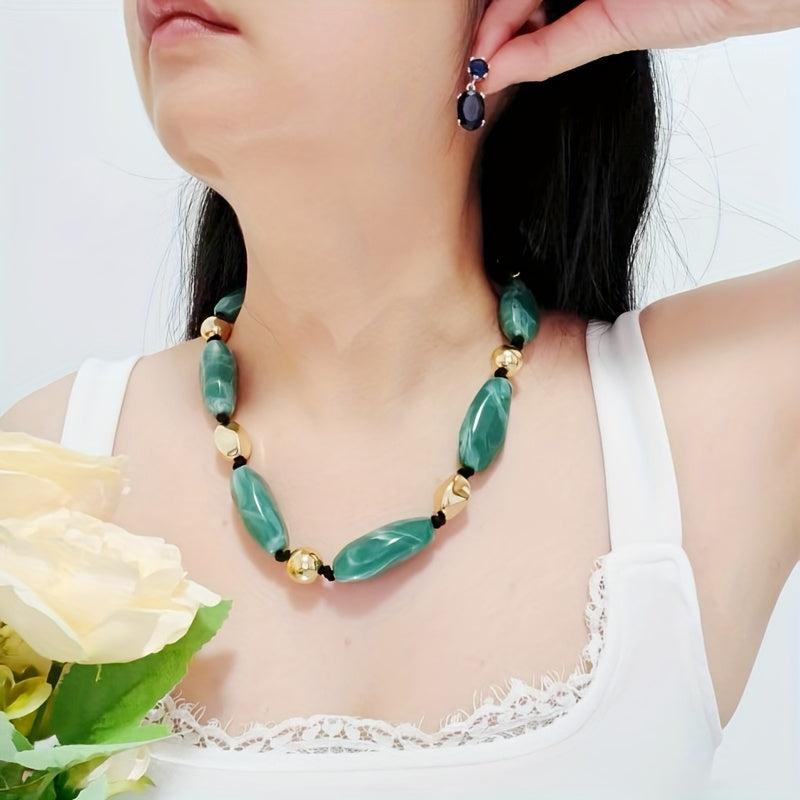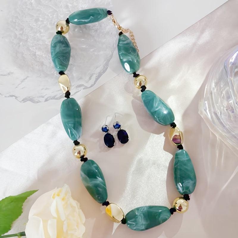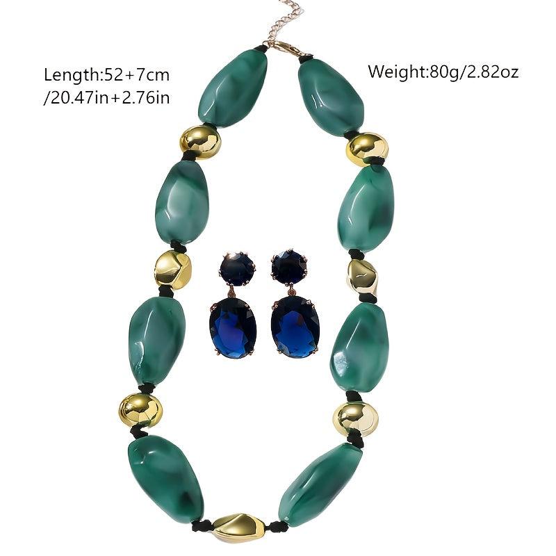 Elevate your party look with this stunning gradient glass bead necklace and earrings set. The retro bohemian style adds a touch of elegance to any outfit, perfect for special occasions and holidays.