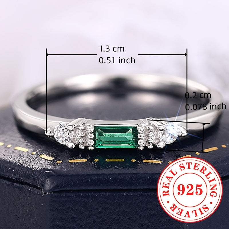 Elegant synthetic green zirconia ring made of pure silvery material. Perfect for parties and casual wear.