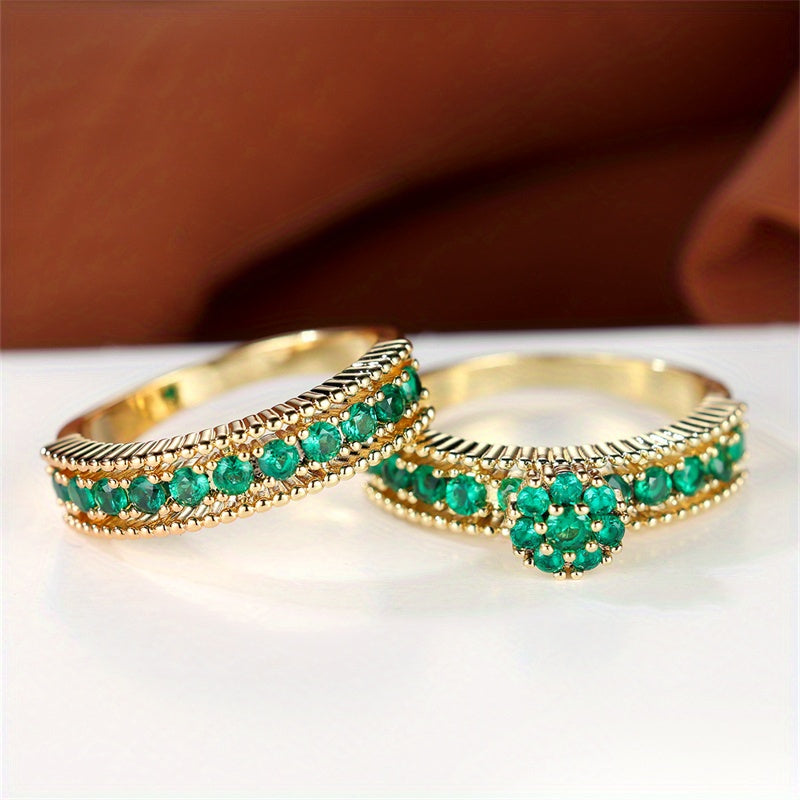 Add a touch of elegance to your look with these green synthetic zirconia rings set, perfect for weddings, parties, and everyday wear.