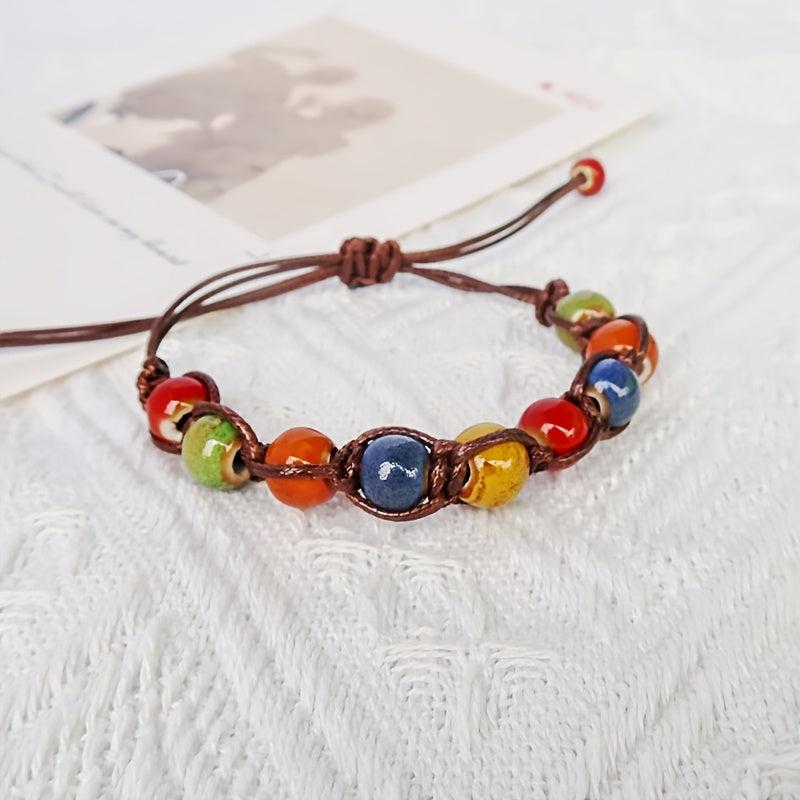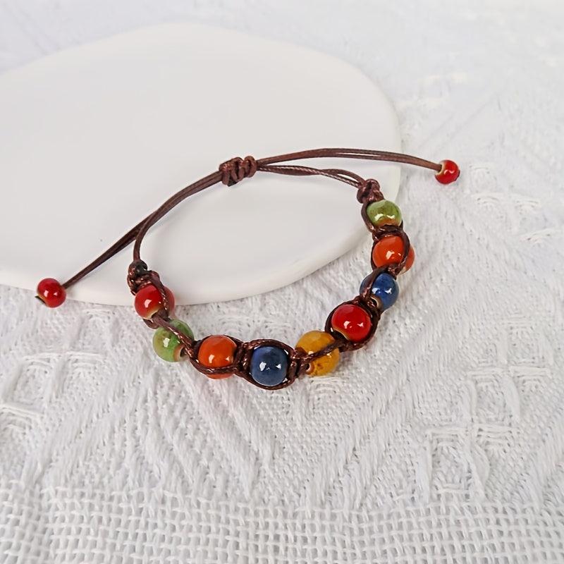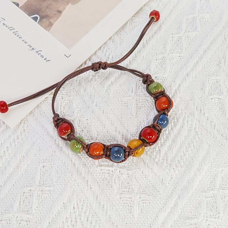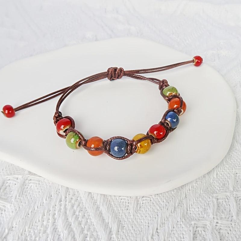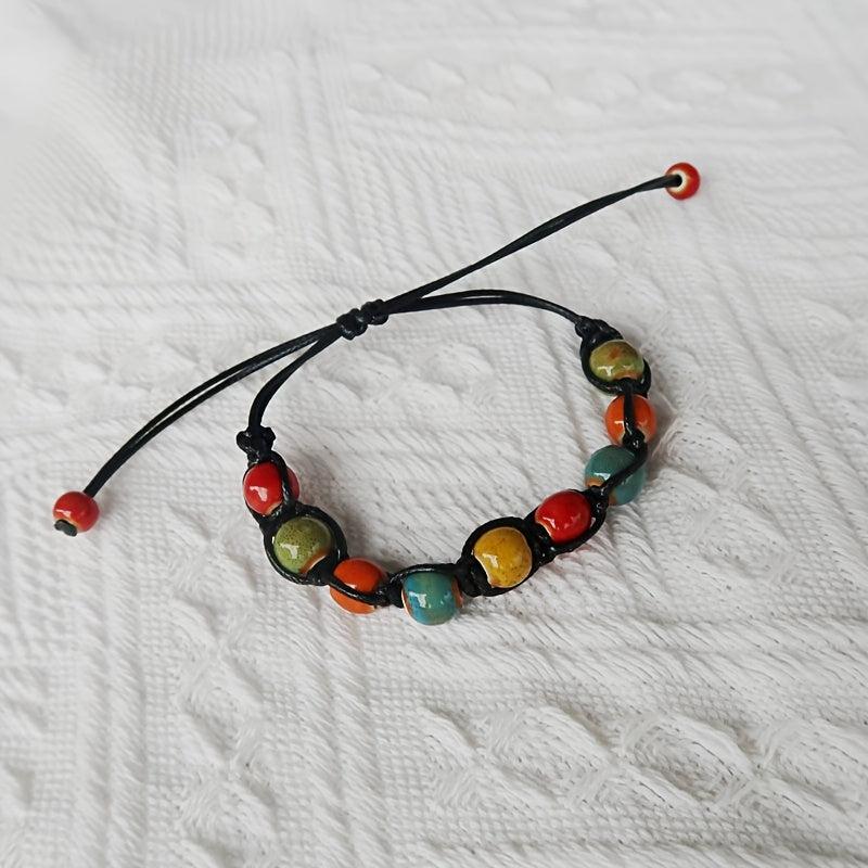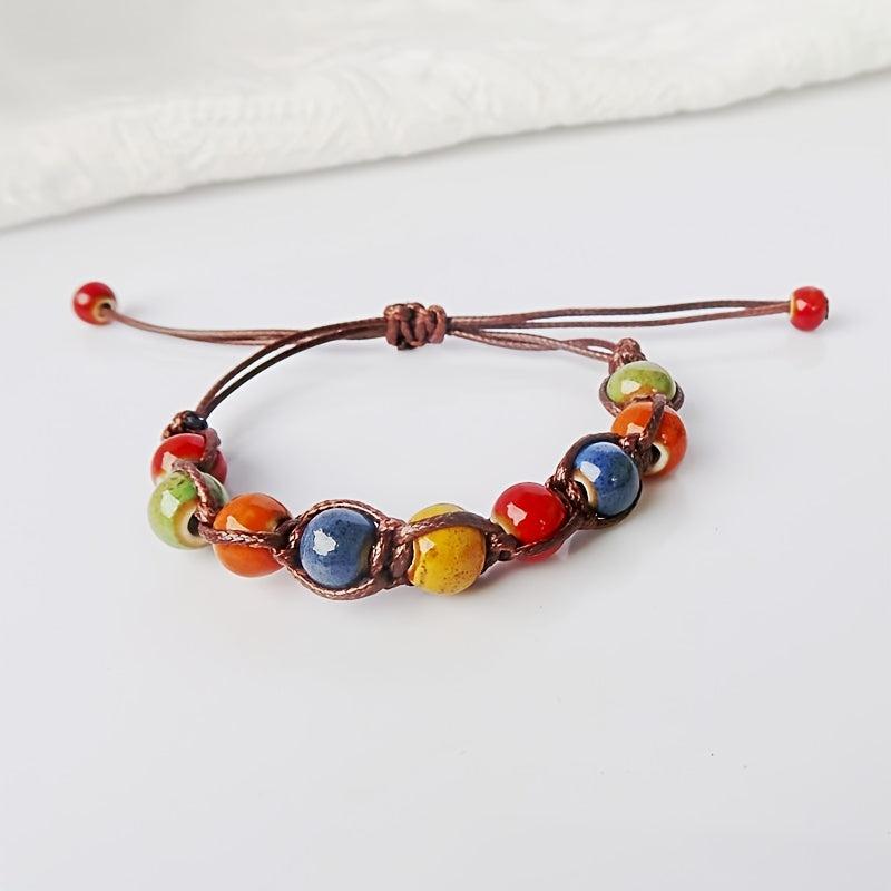 This ceramic couple bracelet features a vintage ethnic style design, perfect for men and women. It is hand woven with intricate details, making it a unique and stylish accessory. Great as a gift for students, sisters, or anyone who appreciates literary-inspired jewelry.