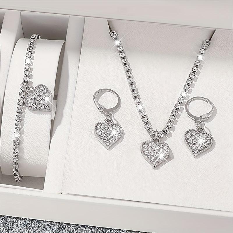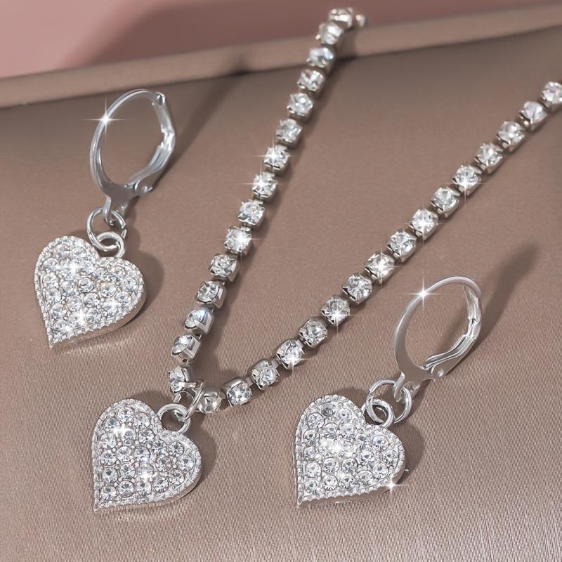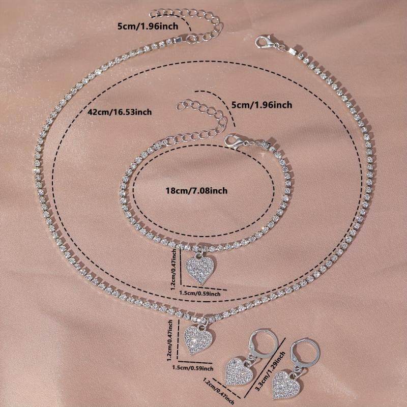 This heart jewelry set includes a necklace, earrings, and bracelet, perfect for daily wear or special occasions. It makes an ideal gift for weddings, anniversaries, or birthdays.