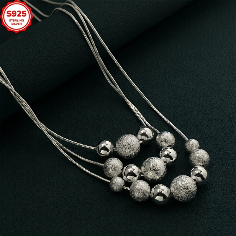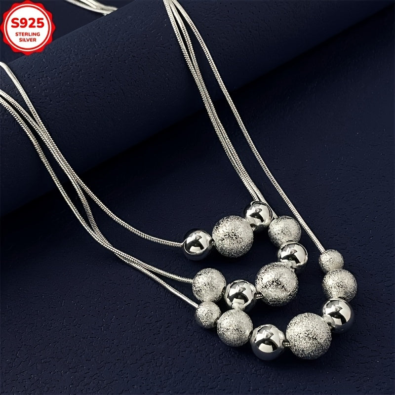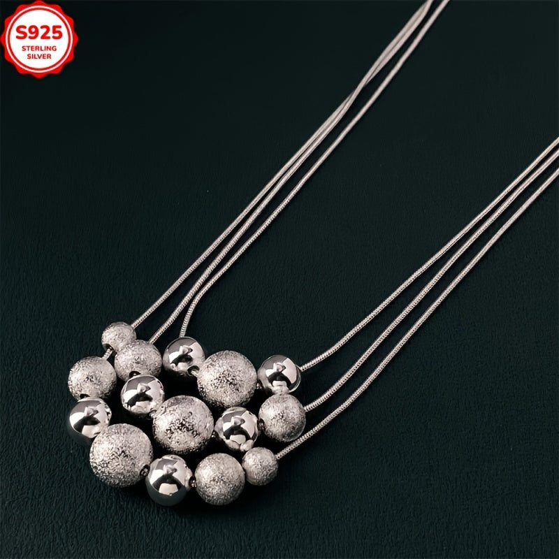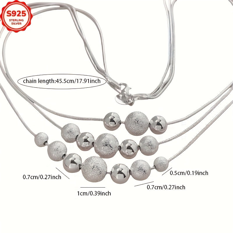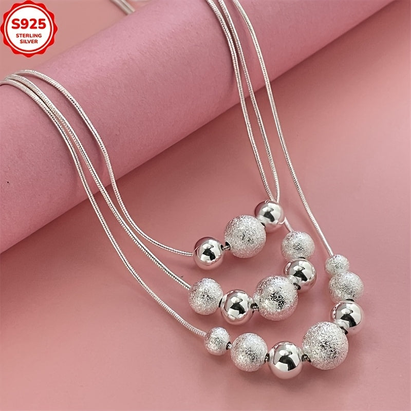 This elegant necklace features a three-row design with frosted beads and a snake chain layer. Perfect for any occasion, this collarbone chain is suitable for all.