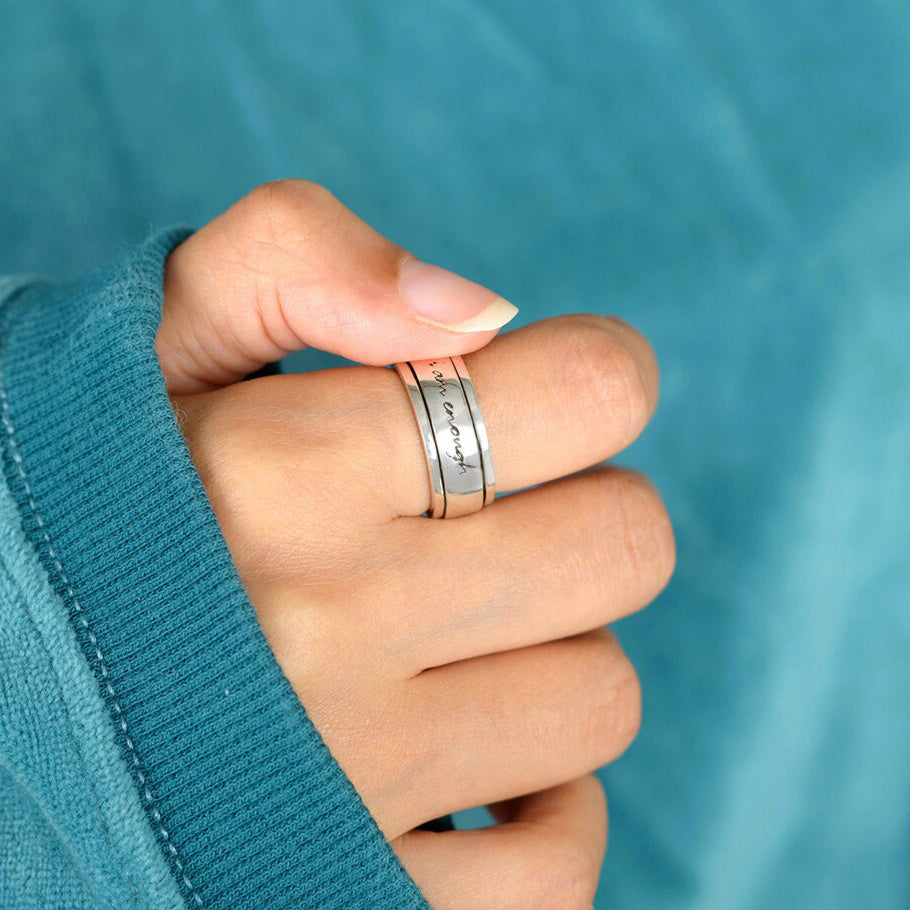 Empower yourself with this inspirational ring that reminds you that you are enough. Made of high-quality stainless steel, this ring is durable and stylish.