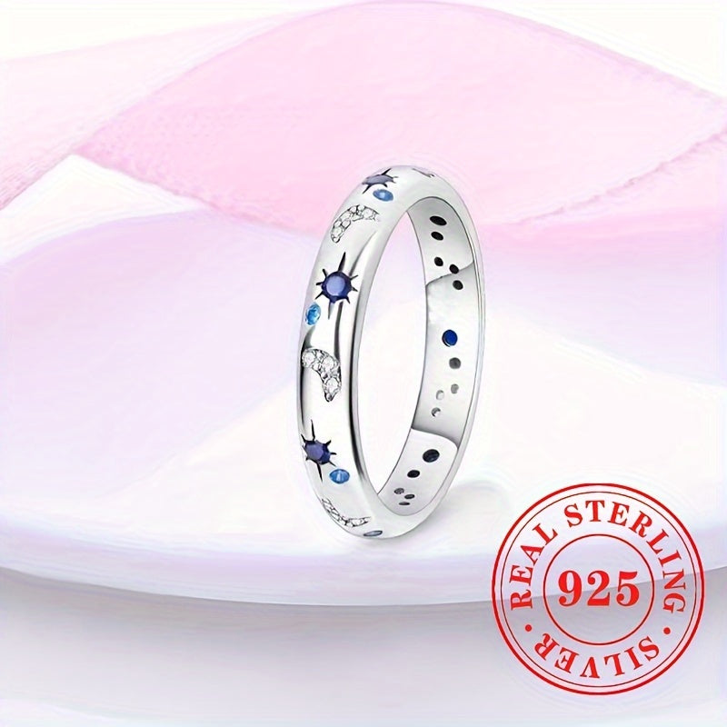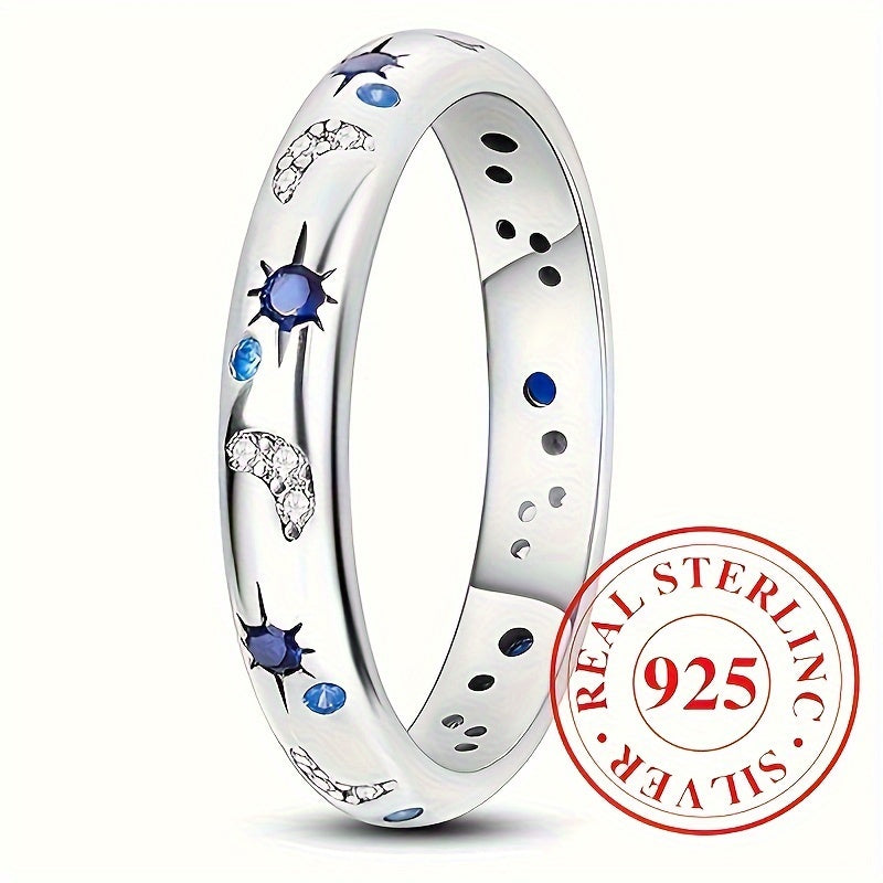 Add a touch of celestial charm with this sterling silver ring featuring synthetic zirconia star and moon design. Perfect for everyday wear, vacation, parties, and Ramadan festivities.