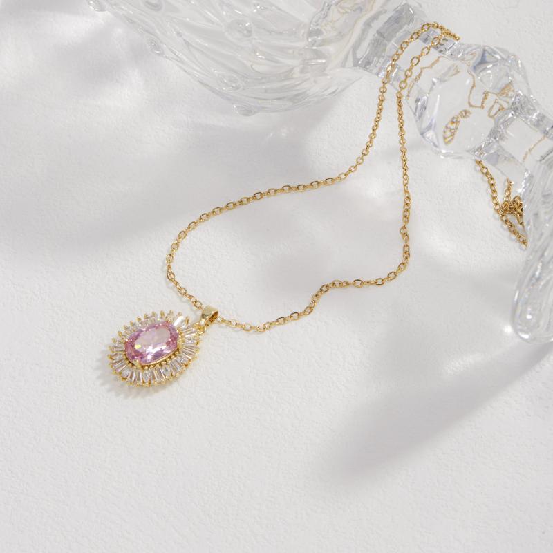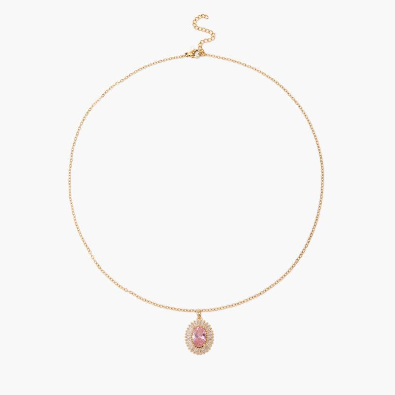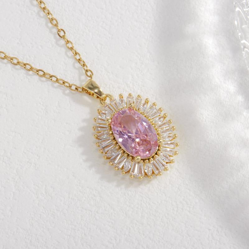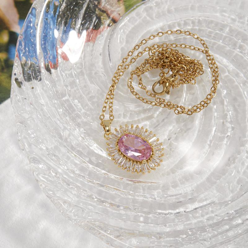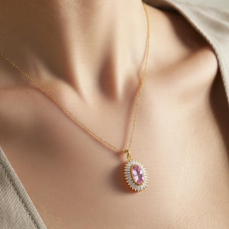 Add a touch of elegance with this hypoallergenic stainless steel pendant necklace featuring an oval pink gemstone. Perfect for daily wear, parties, beach vacations, and charms.