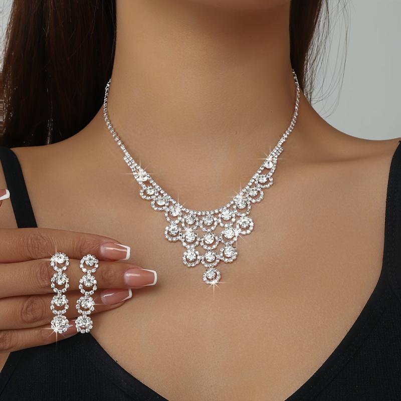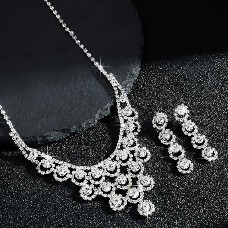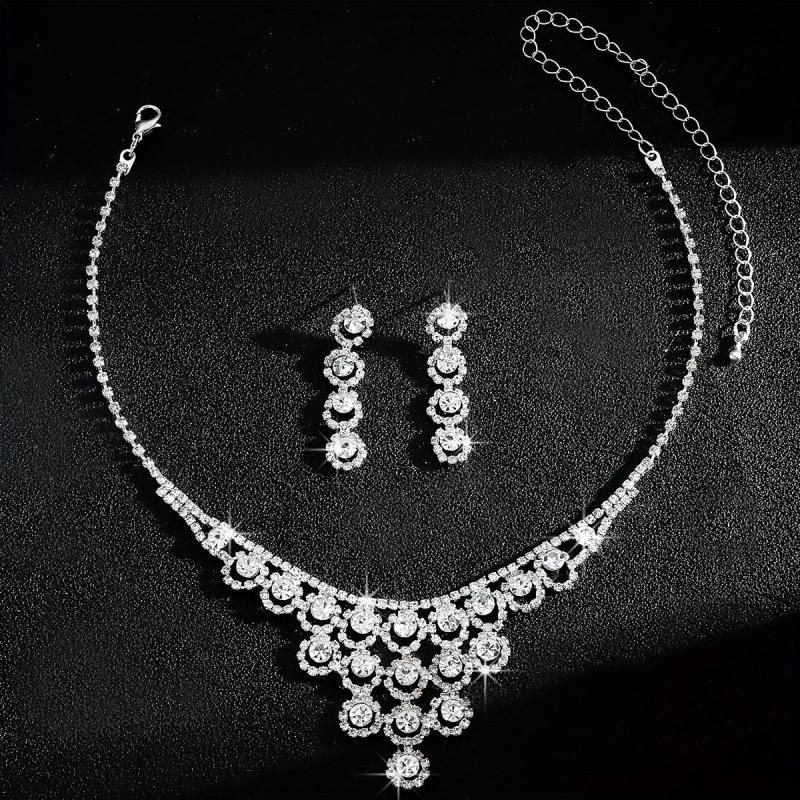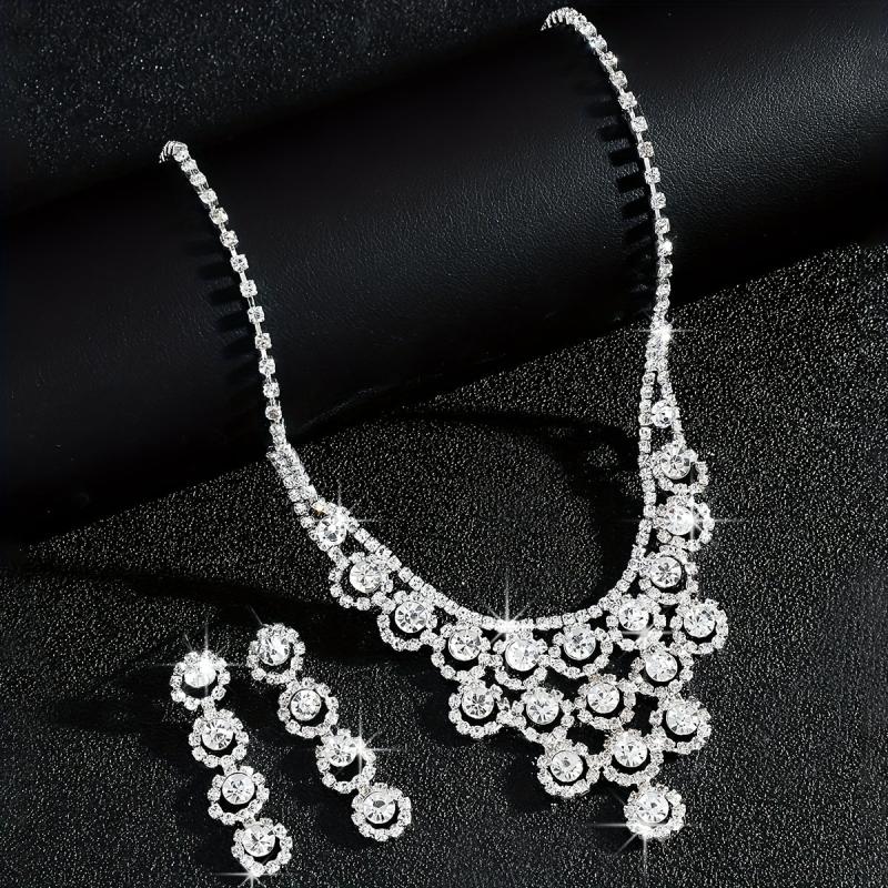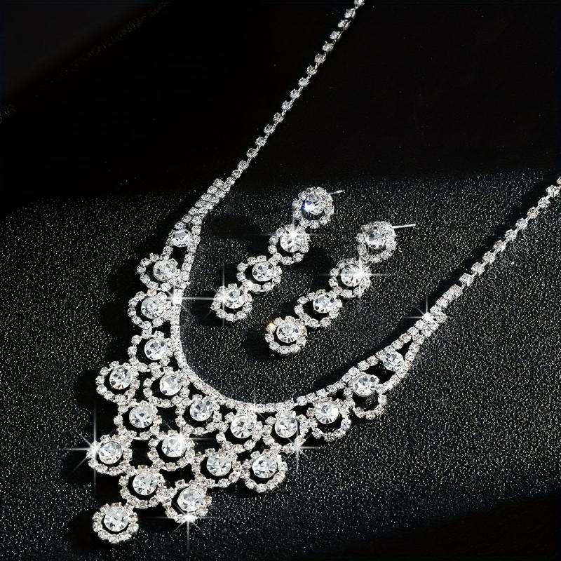 • Includes necklace and earrings for a coordinated bridal ensemble