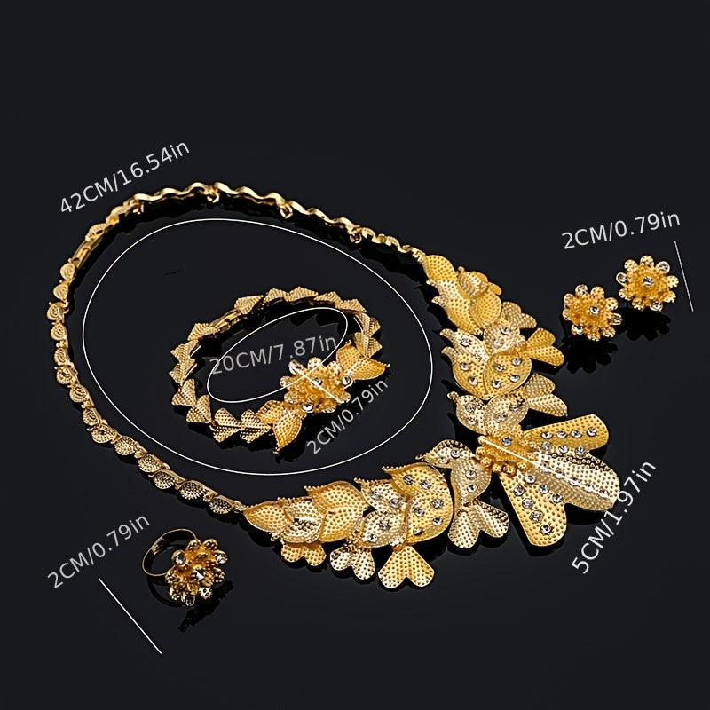 • Complete jewelry set with necklace, earrings, bracelet, and ring