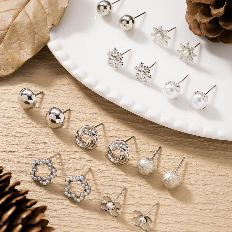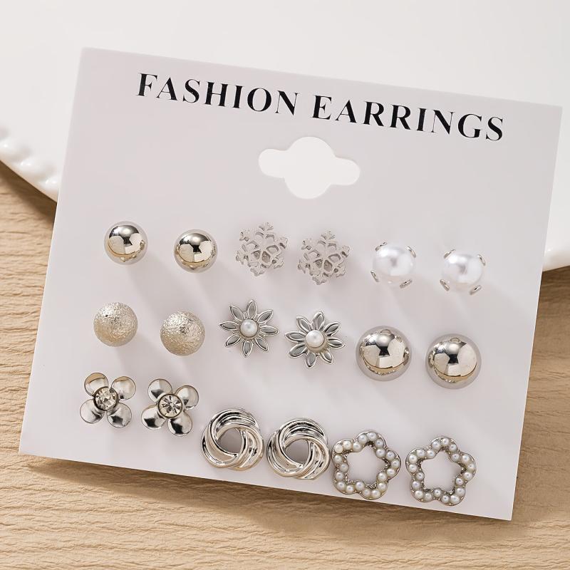 This elegant earring set features a faux snowflake rhinestone flower design, perfect for the holiday season.