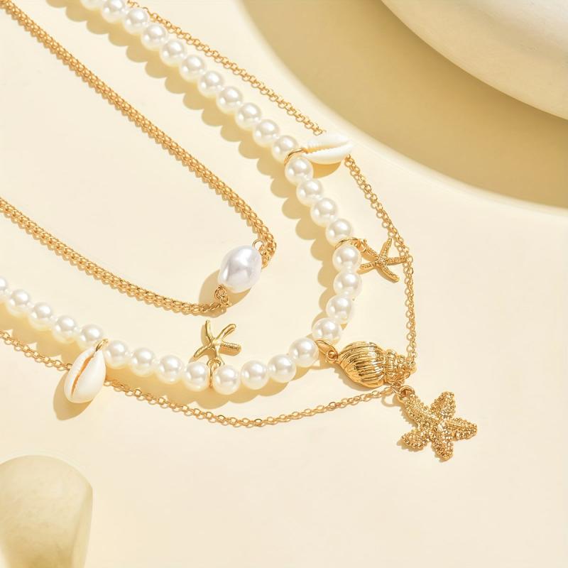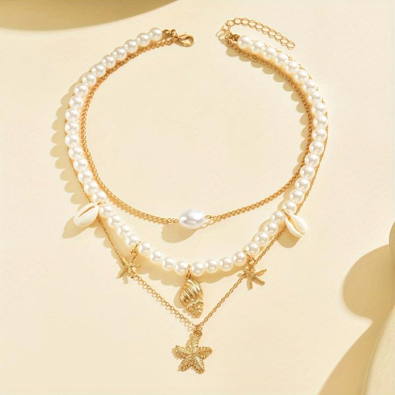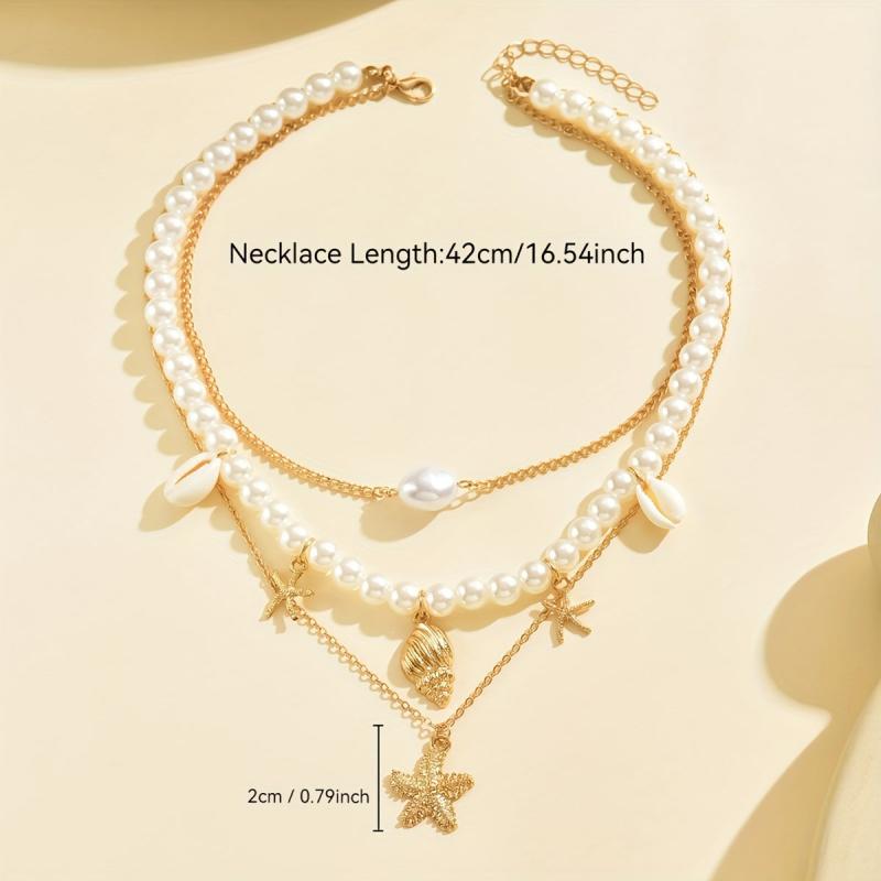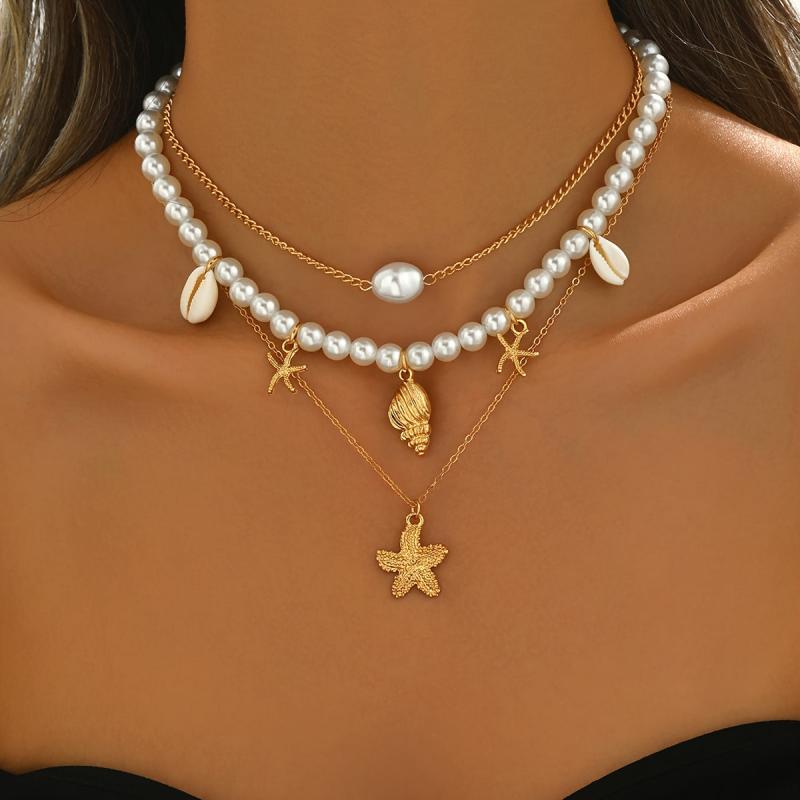 This necklace features a trendy ocean style faux pendant design with a random number of beads for a unique look.