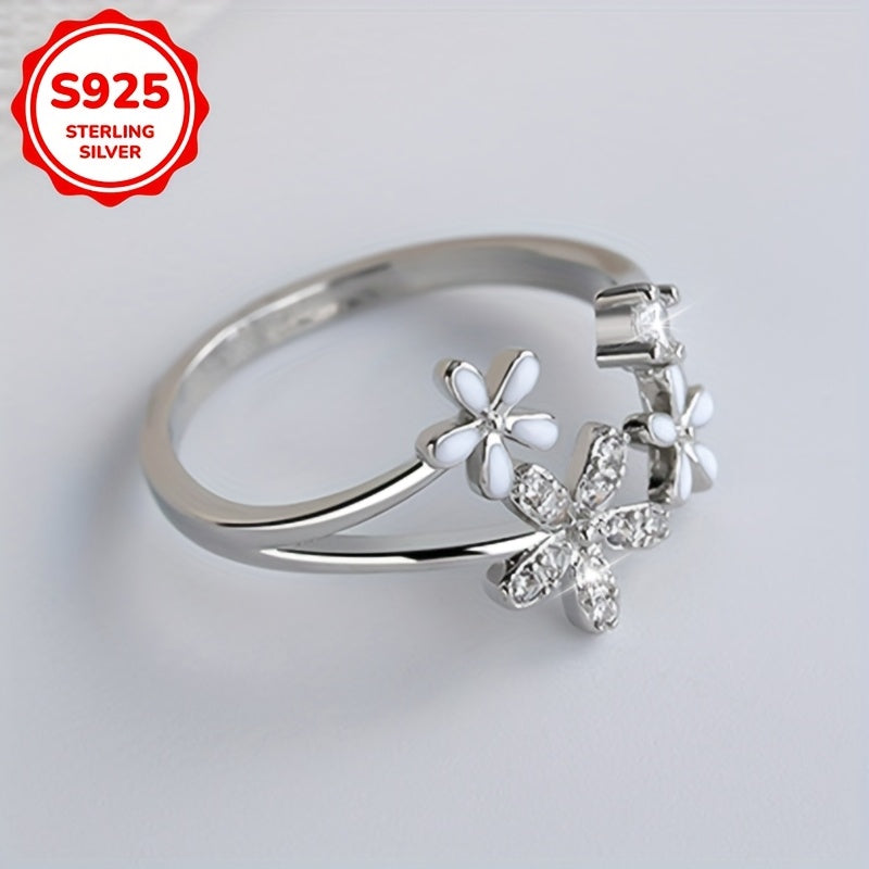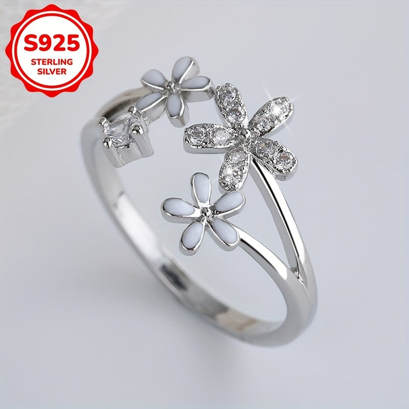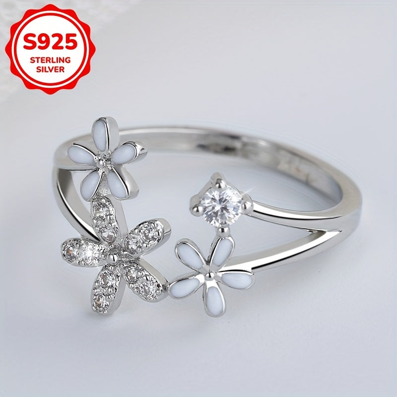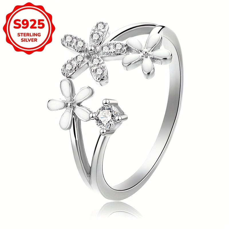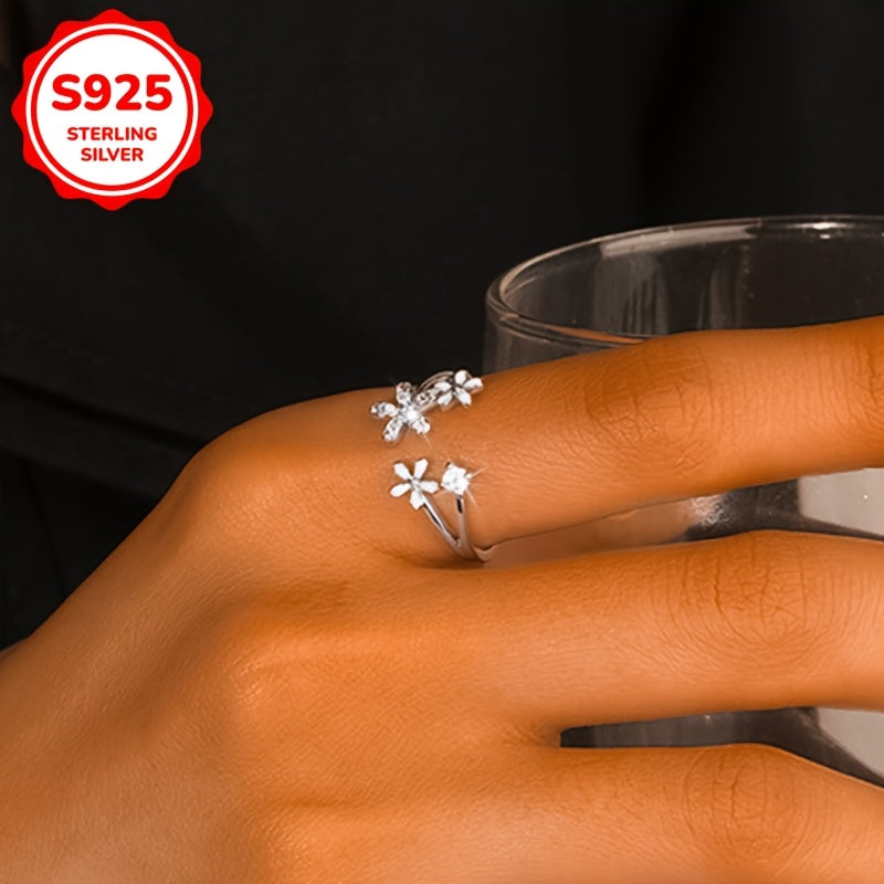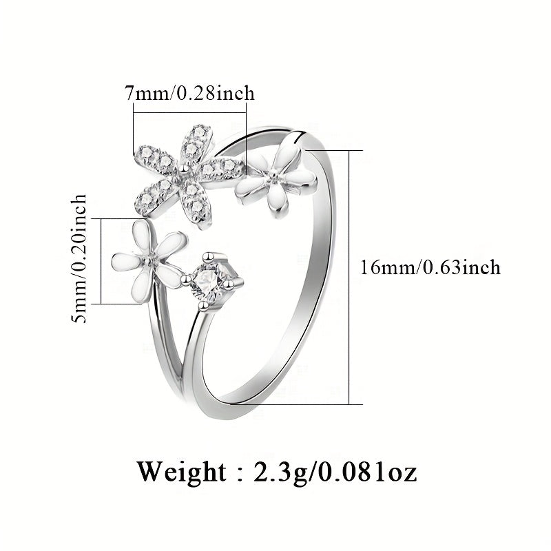 This sweet and fresh open ring features delicate drop glue flowers set in synthetic zirconia on a 925 silver band. It's lightweight at 2.3g, perfect for daily wear or a thoughtful Mother's Day gift for mom.