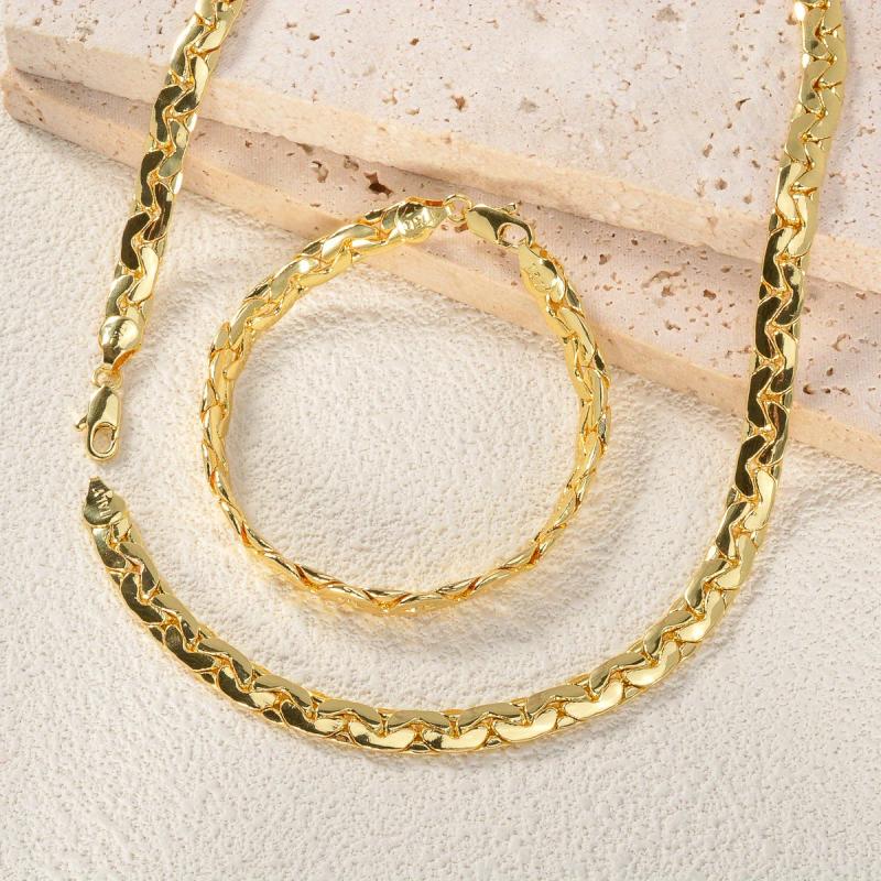 This 2-piece set includes a classic retro style geometric necklace and bracelet. Perfect for both men and women.