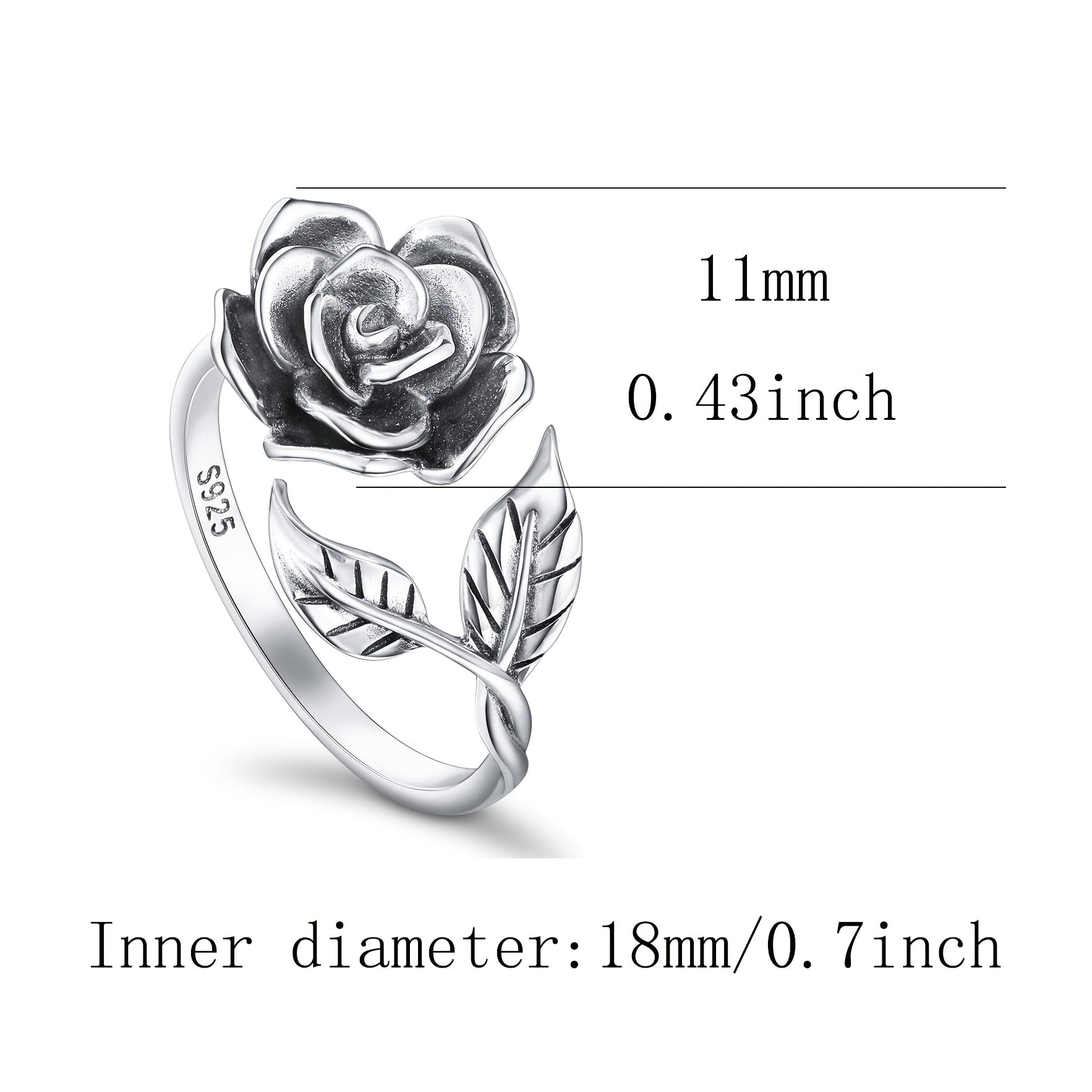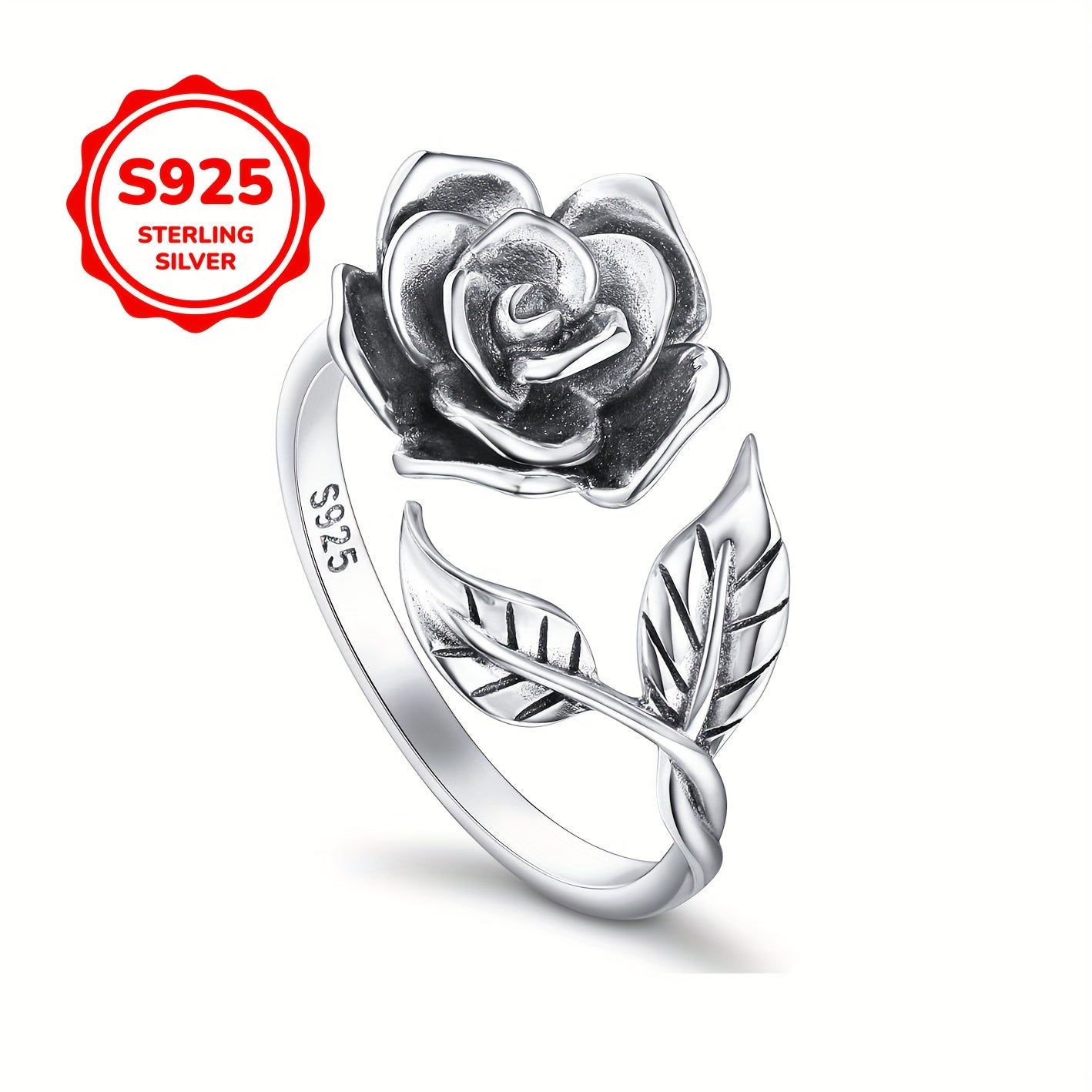 Retro Rose Flower Ring S925 Silver Women's Adjustable Open Ring