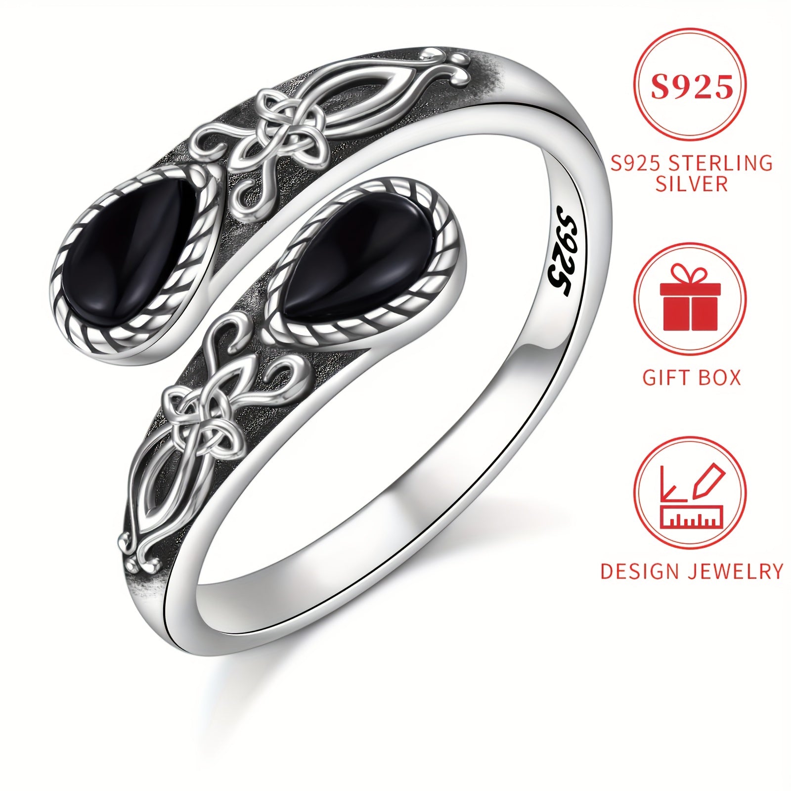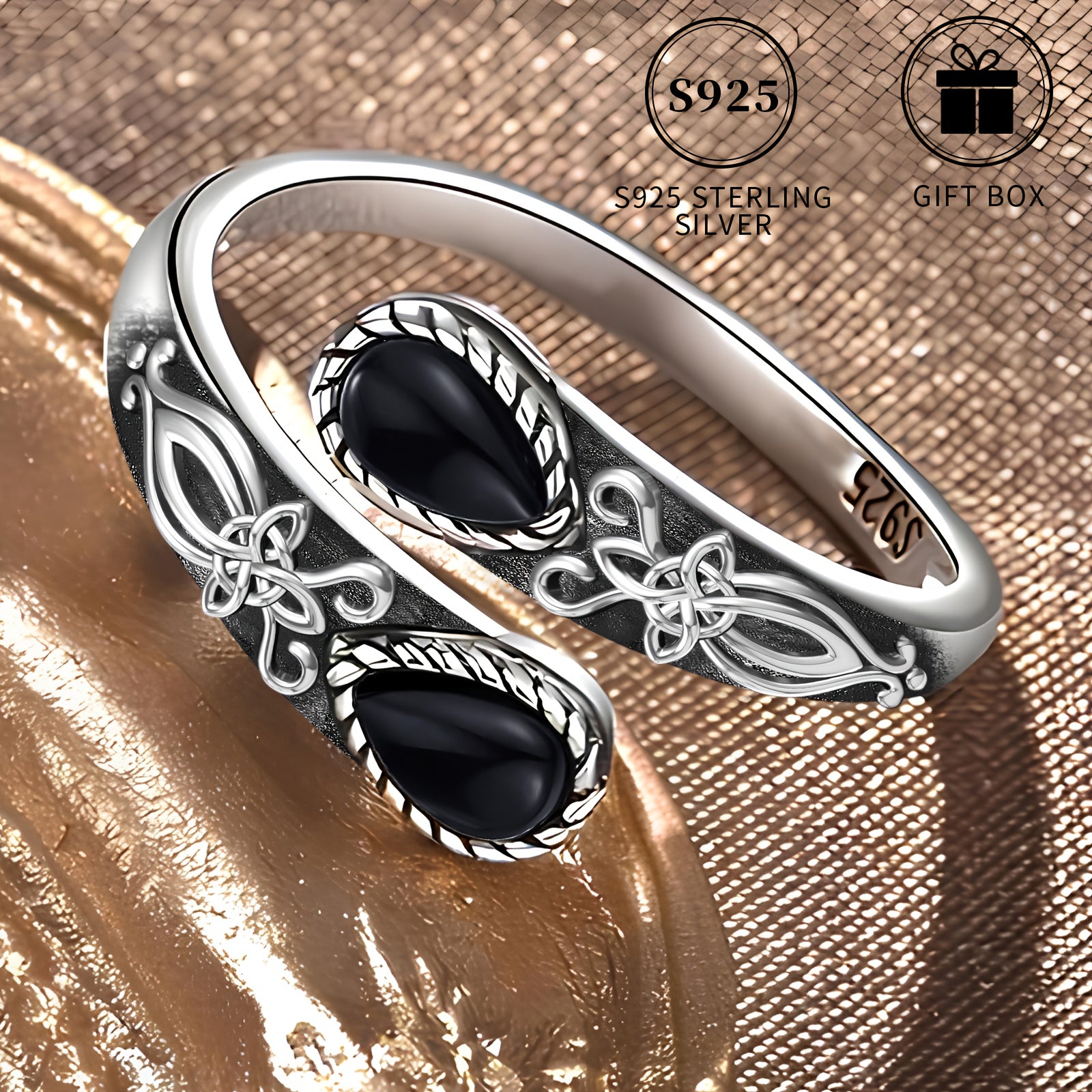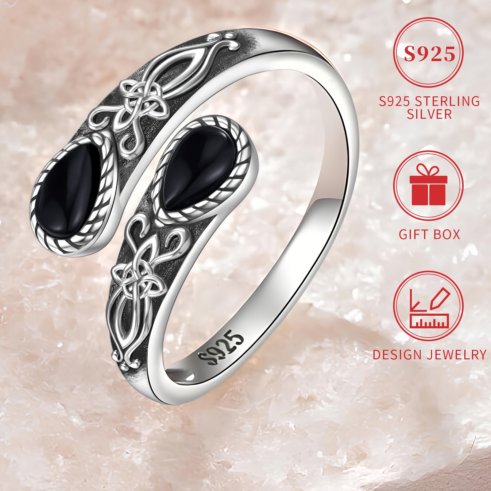 S925 Celtic Knot & Agate Spoon Ring Vintage Boho Style Adjustable Thumb