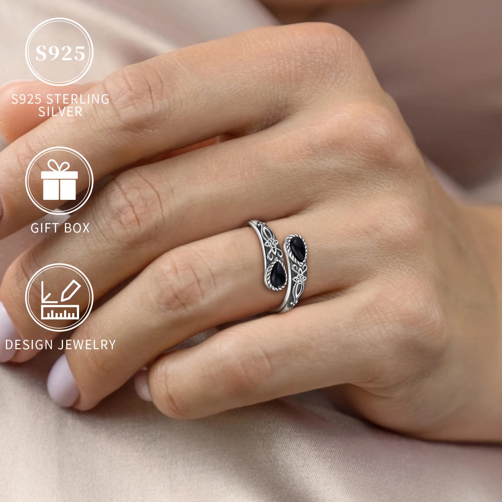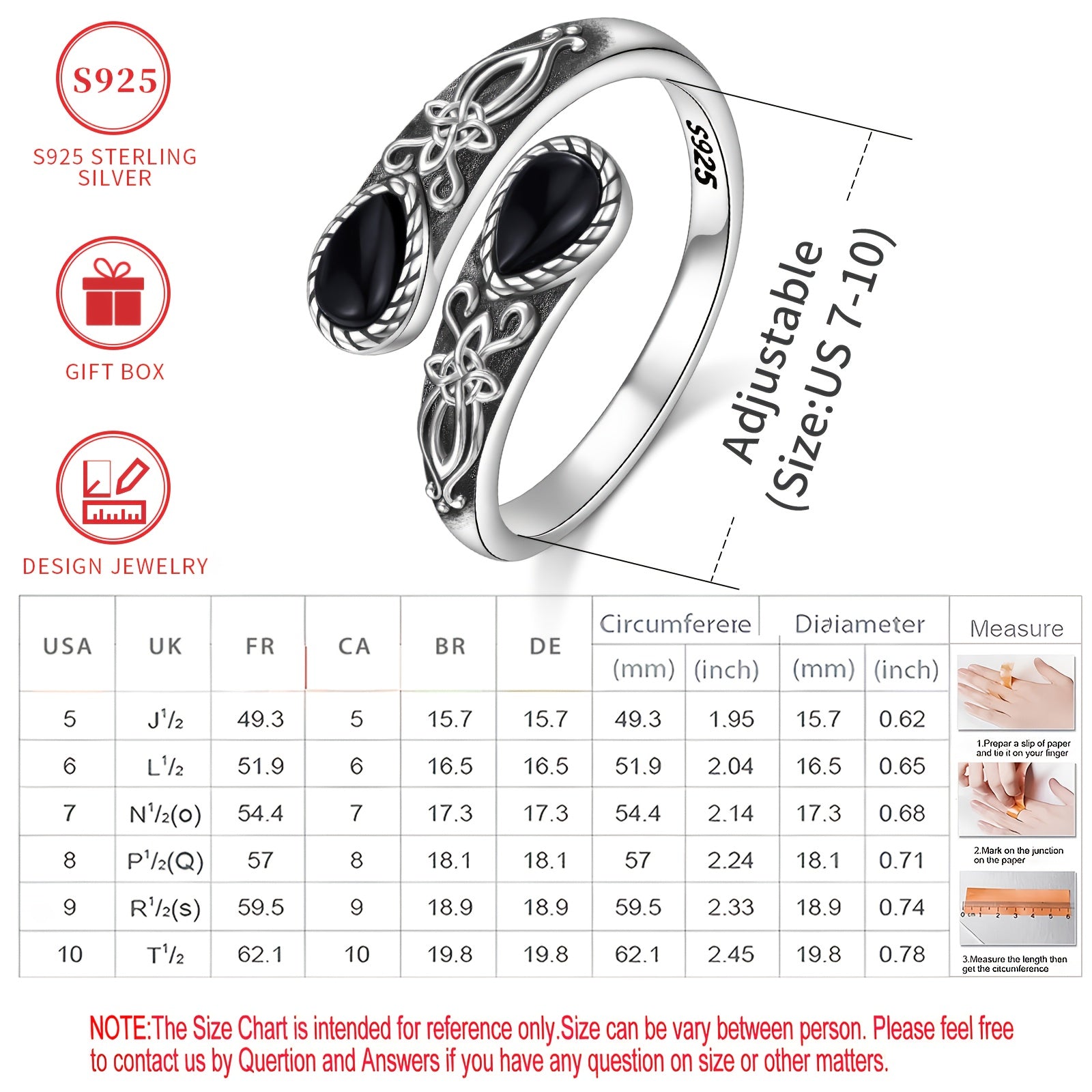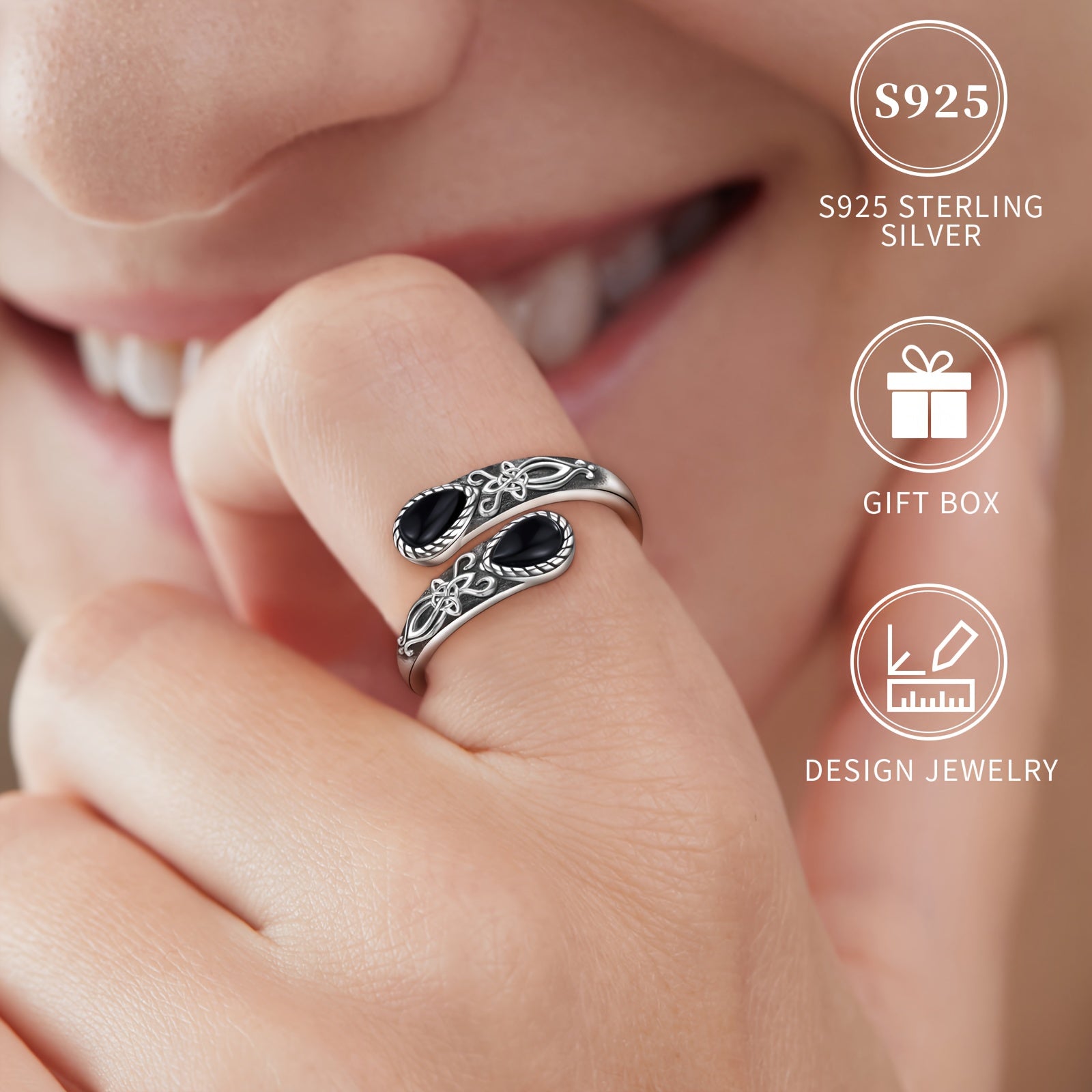 S925 Celtic Knot & Agate Spoon Ring Vintage Boho Style Adjustable Thumb