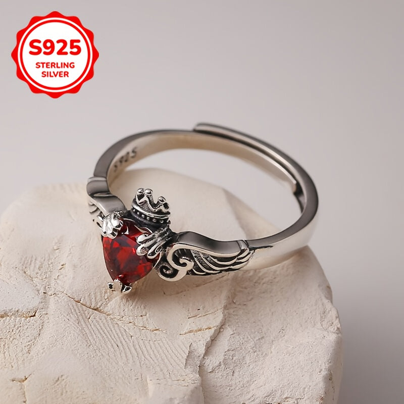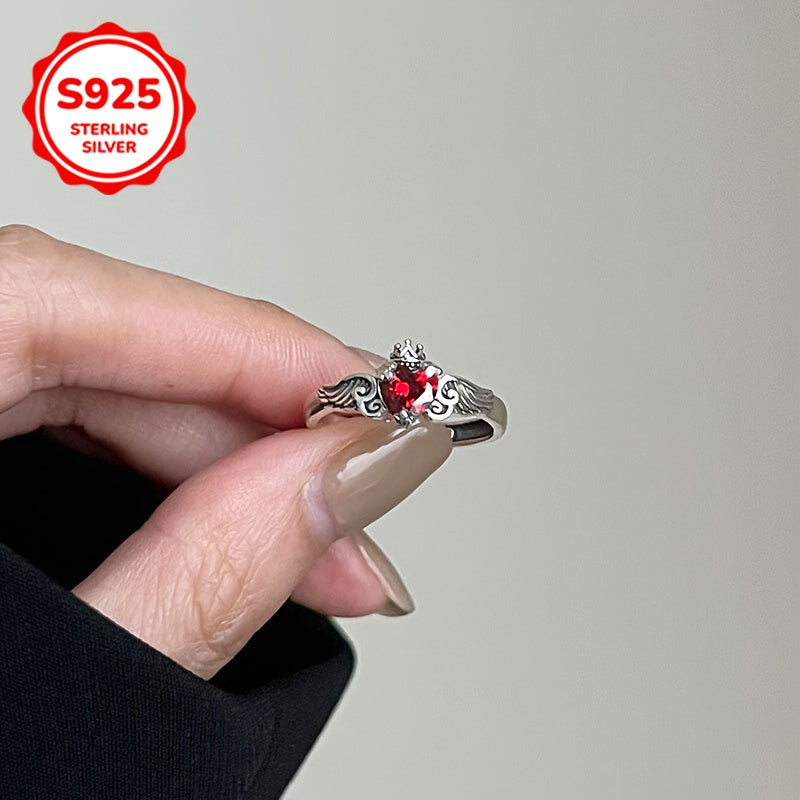 This elegant S925 ring is designed for women with a low allergy feature. It has a French crown wings heart design, perfect for internet celebrities and couples. Ideal as a gift or for daily wear, this accessory adds a decorative touch to your outfit.
