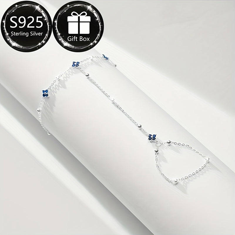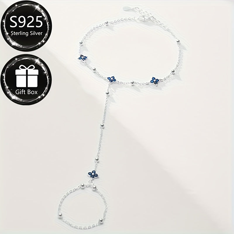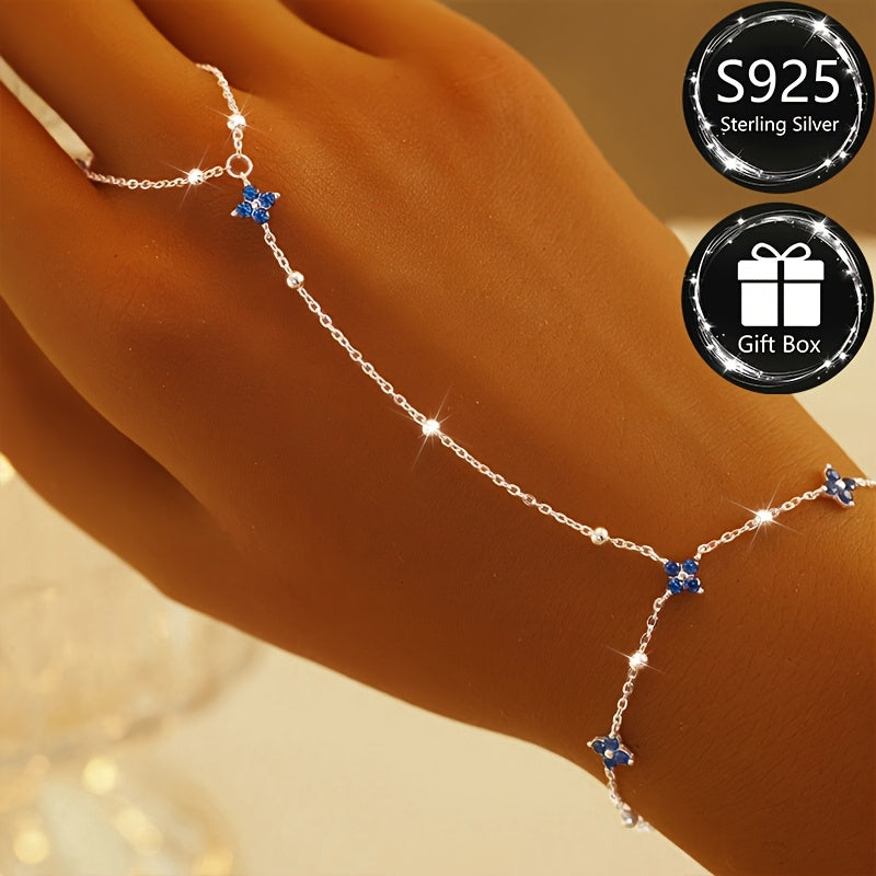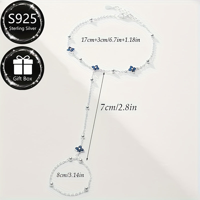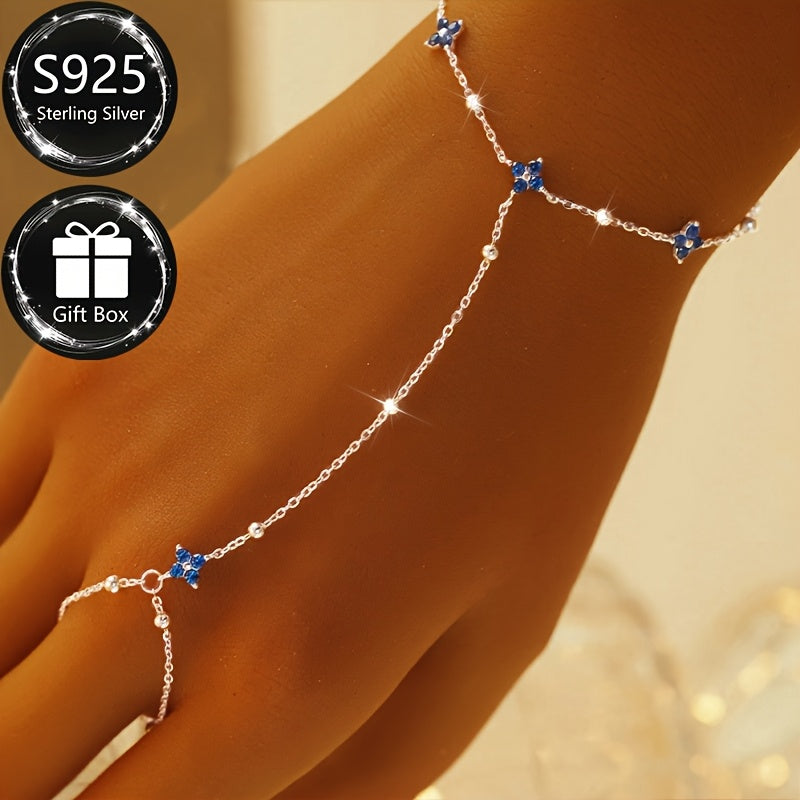 This beautiful finger chain features a four leaf clover design with zirconia accents, perfect for adding a touch of elegance to any outfit. Made of S925 pure silver, it is hypoallergenic and safe for sensitive skin.
