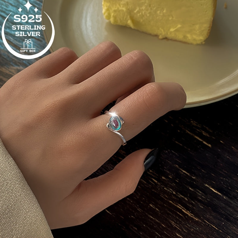 This S925 sterling silver adjustable band ring is designed with a moonstone that is perfect for daily wear. It is allergen-free and an ideal choice for a mother's everyday jewelry.