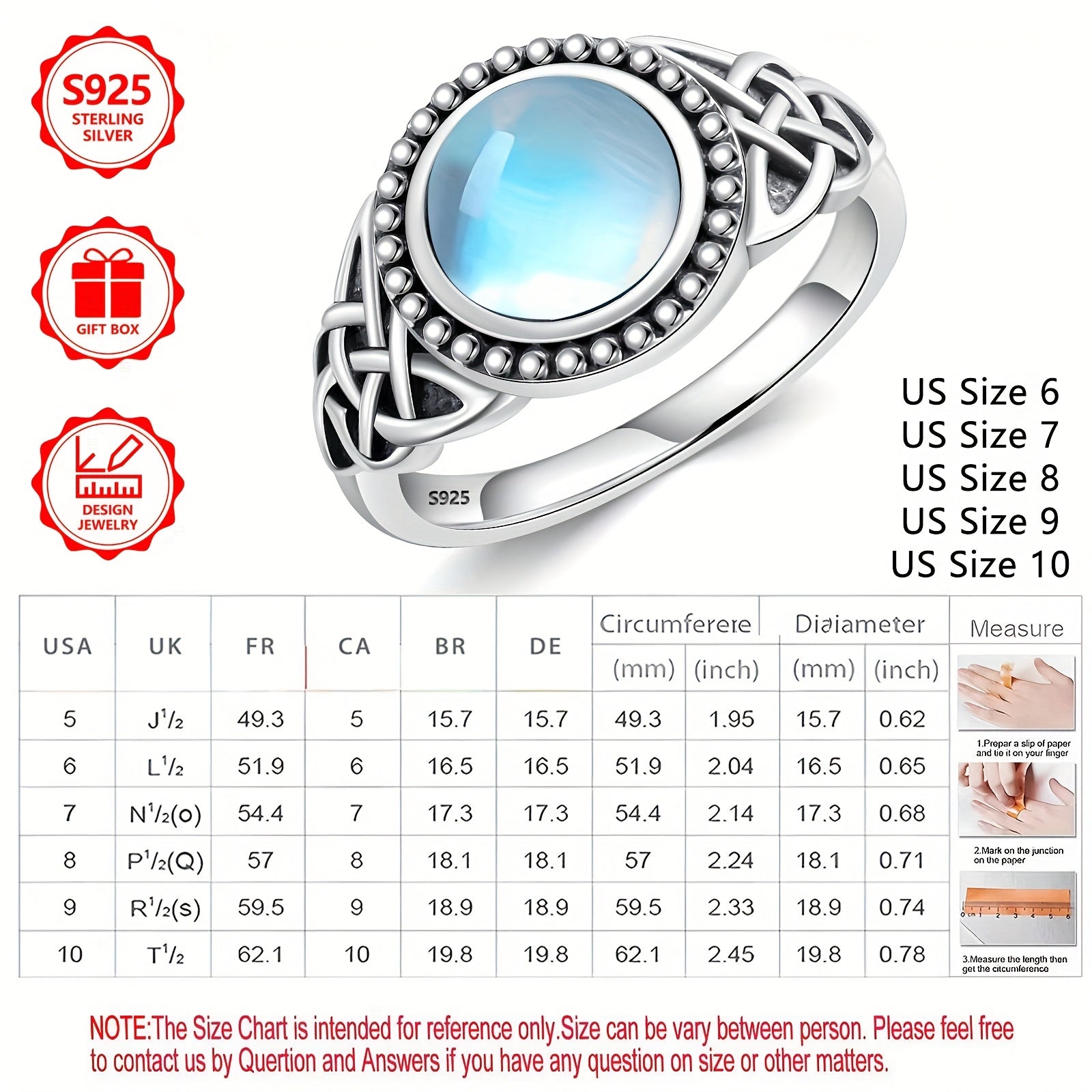This beautiful ring features a Celtic knot design with a moonstone gemstone. Perfect for daily wear or all seasons. Crafted in durable S925 silver.