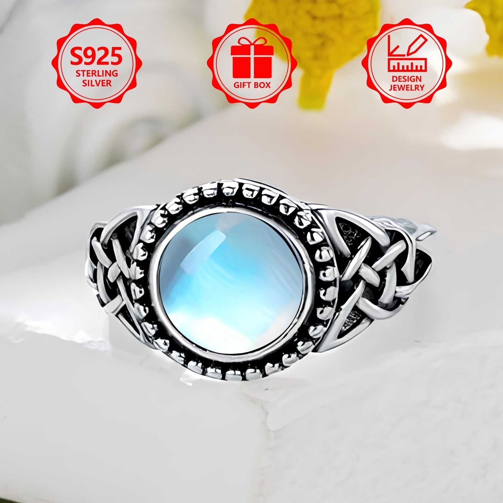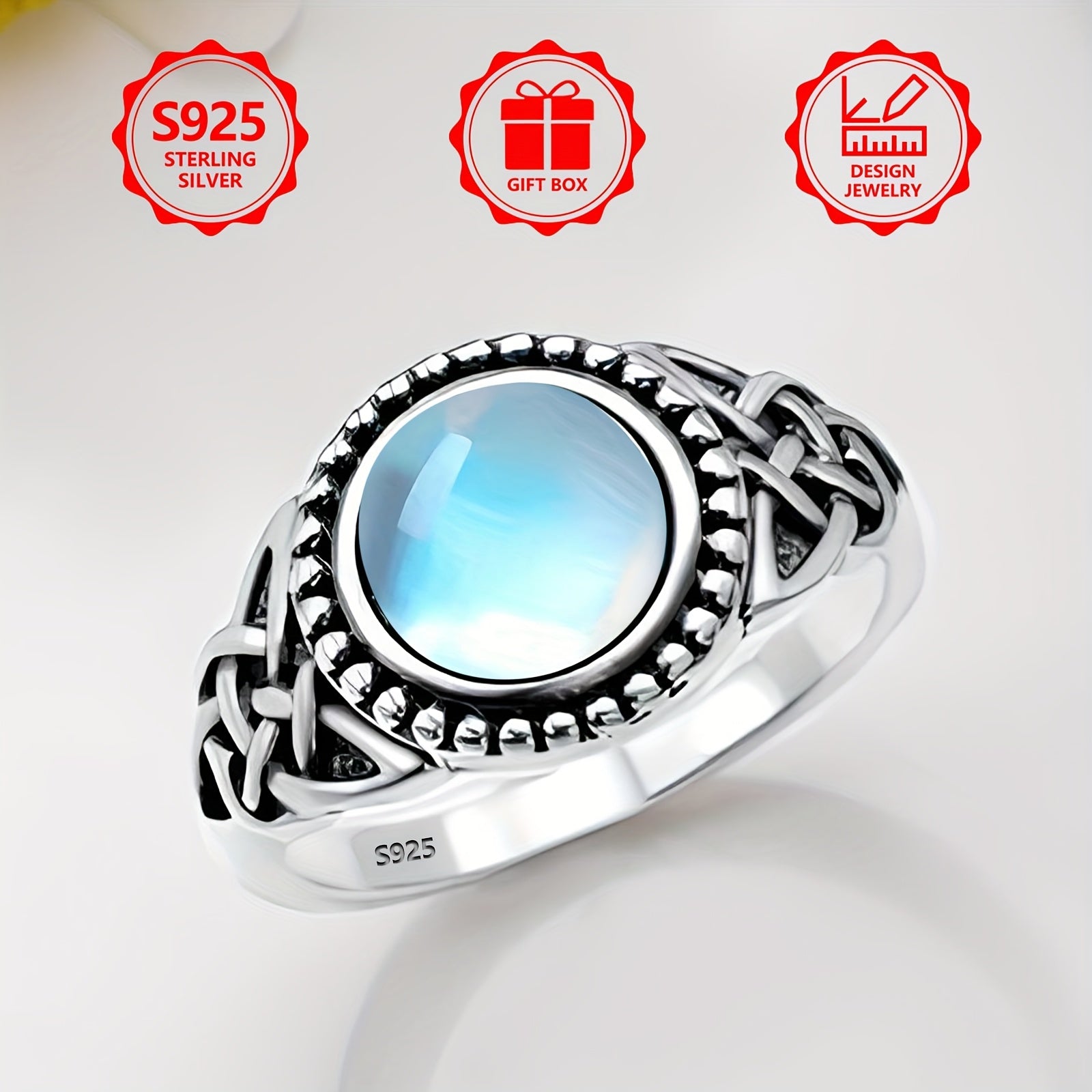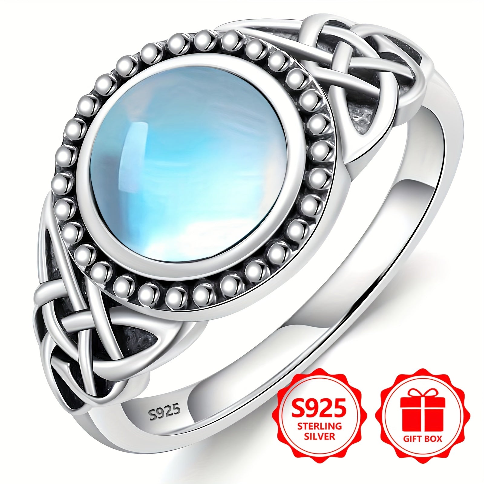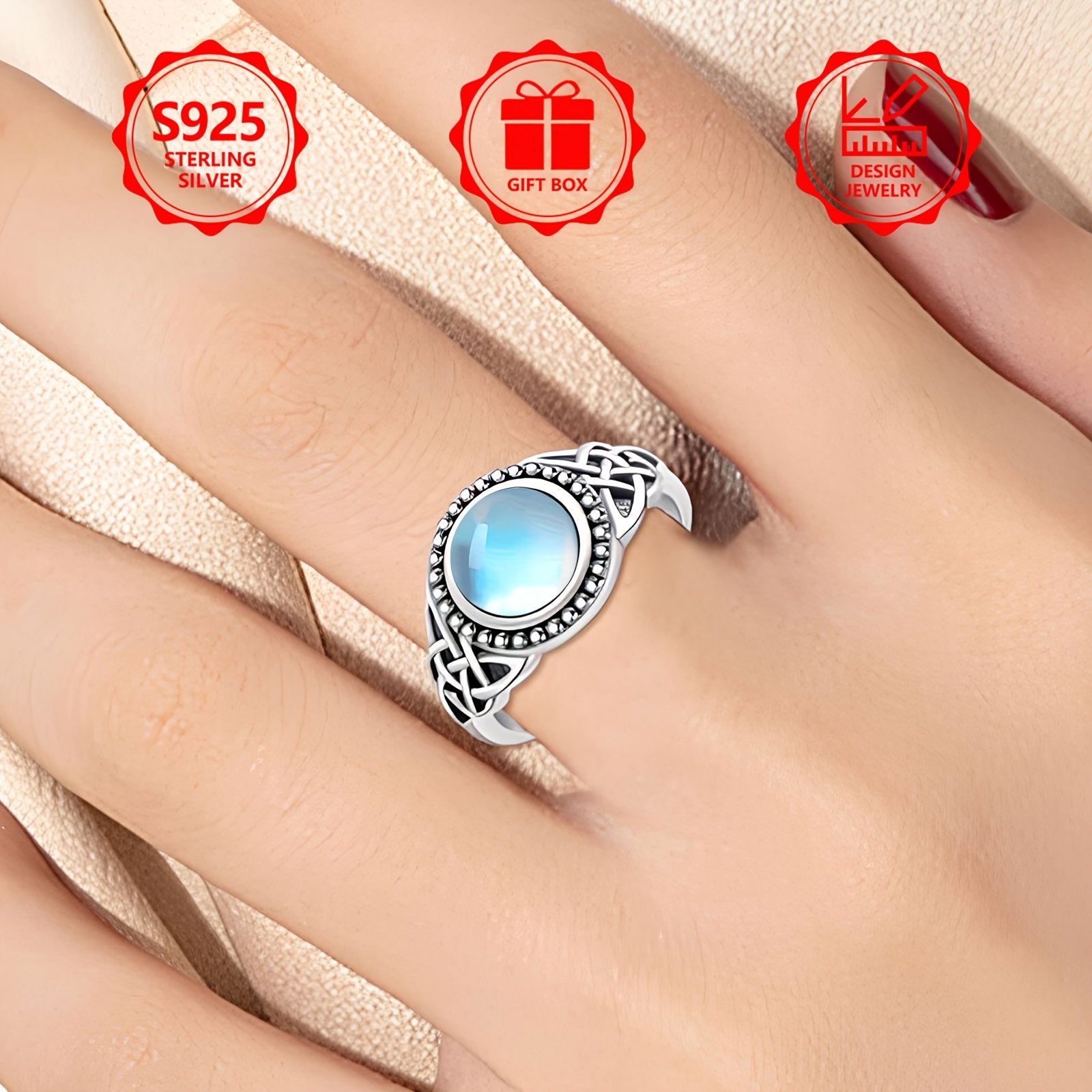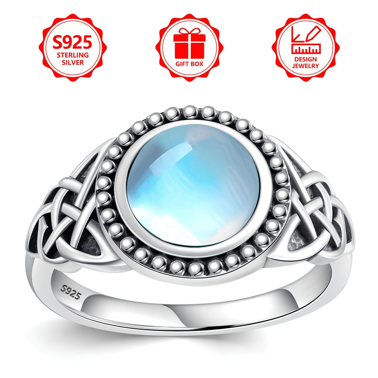 S925 Silver Celtic Knot Ring with Moonstone Vintage Inspired Promise Ring