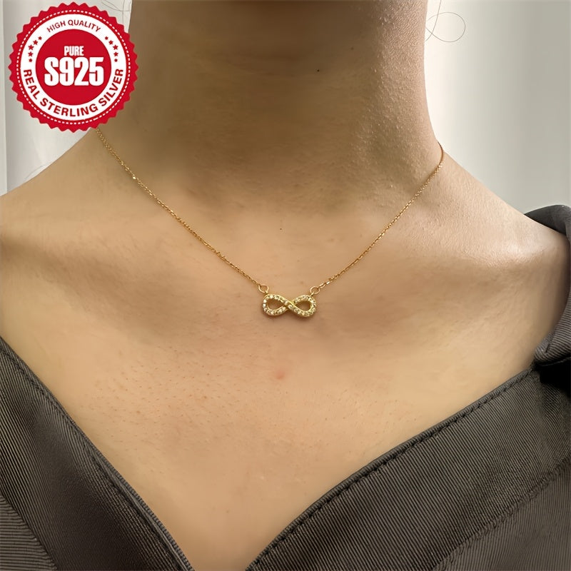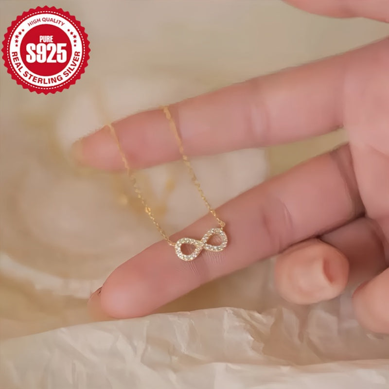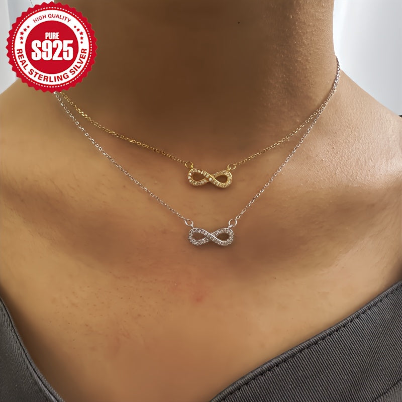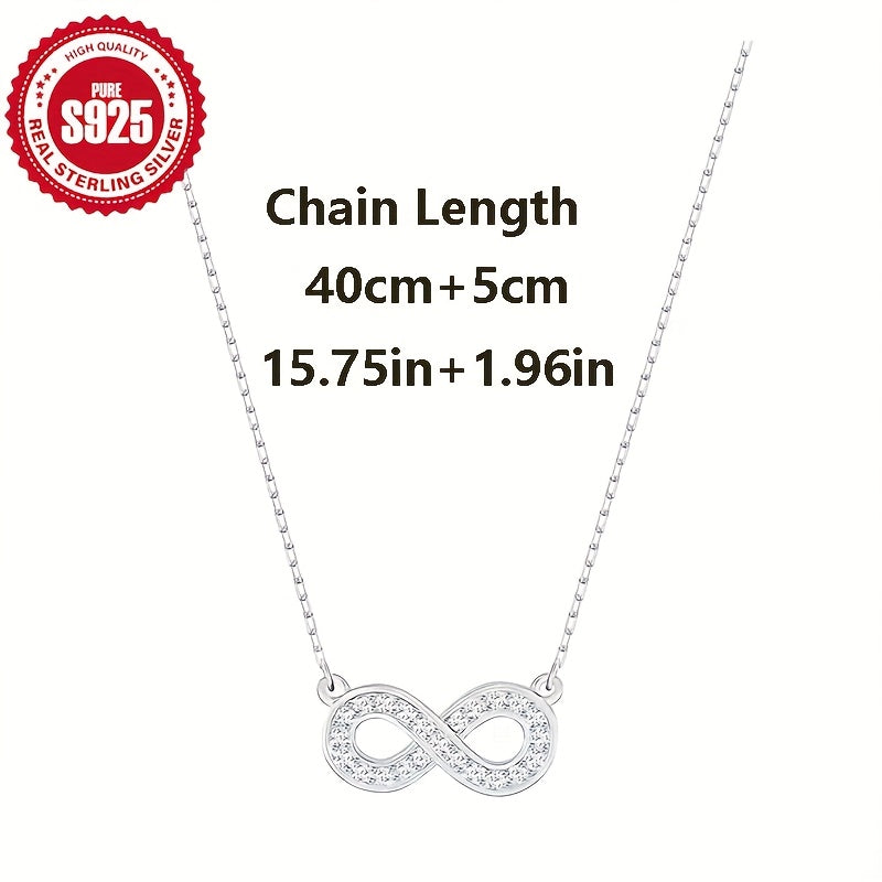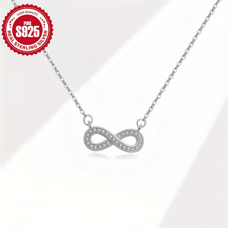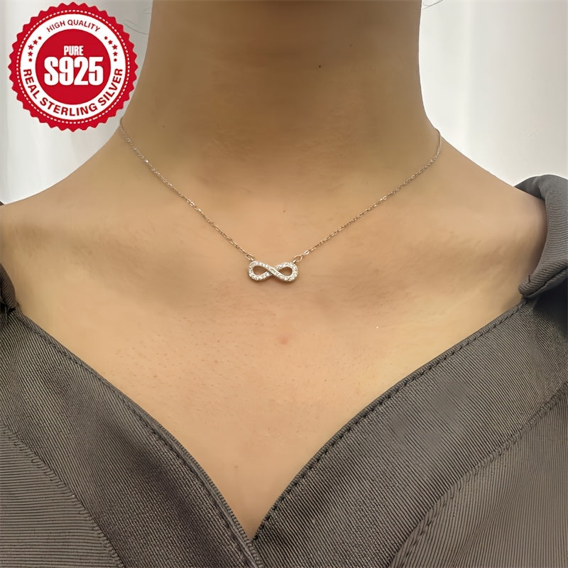 Elegant S925 pure silver necklace featuring an infinity symbol with sparkling cubic zirconia. Perfect for daily wear and parties.