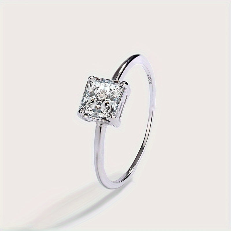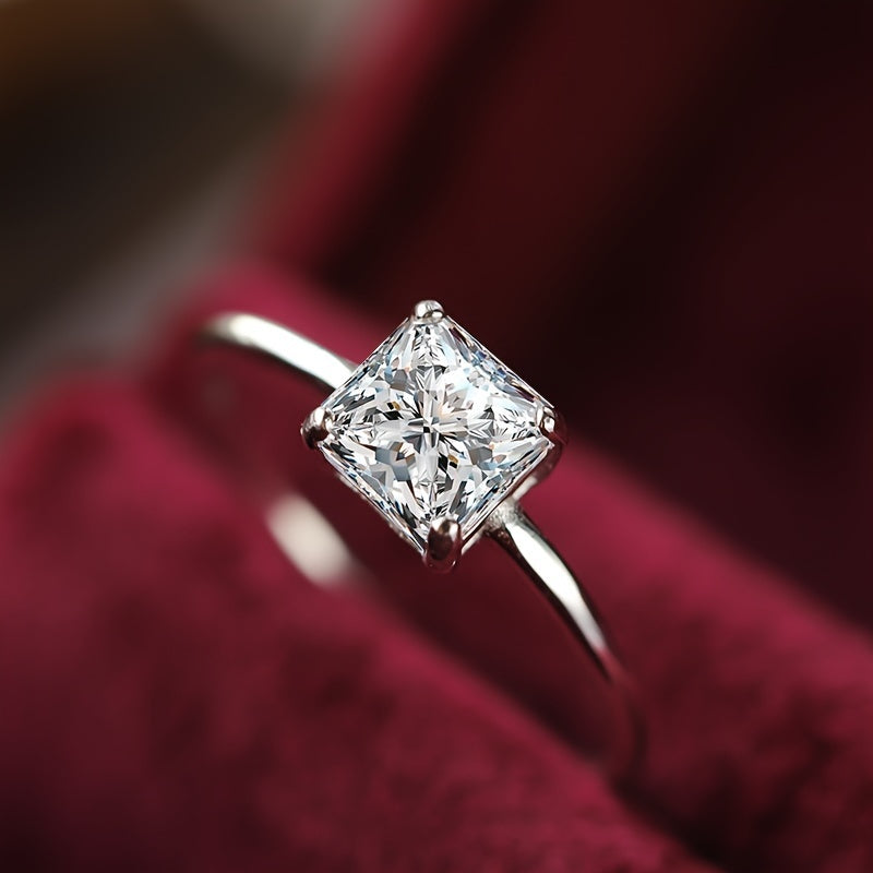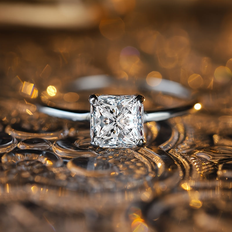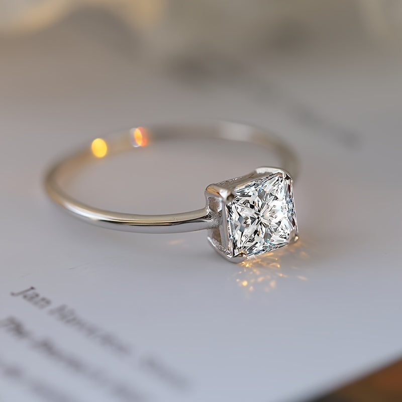 Elegant and timeless, this ring features a classic four-prong setting with a stunning princess-cut cubic zirconia stone. It is the perfect choice for those seeking a sophisticated and stylish engagement ring.
