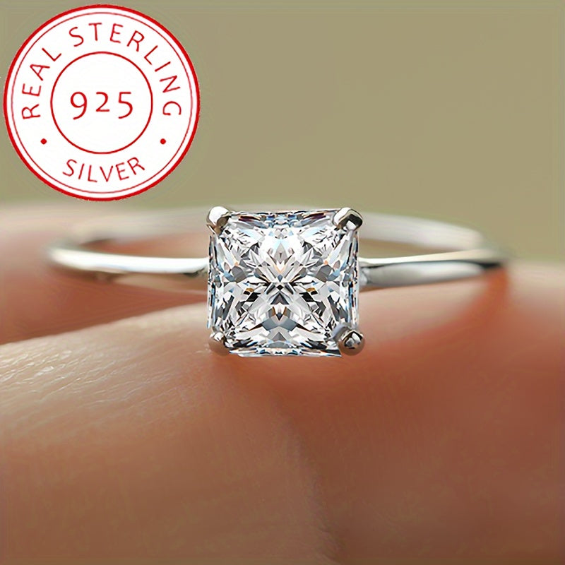 S925 Silver Princess Cut Engagement Ring