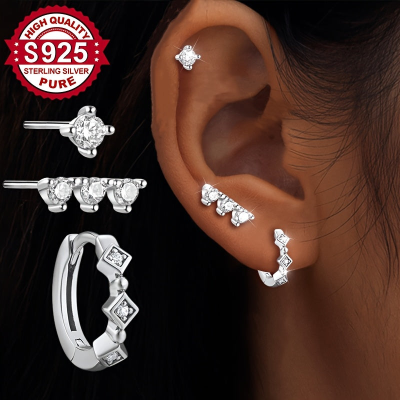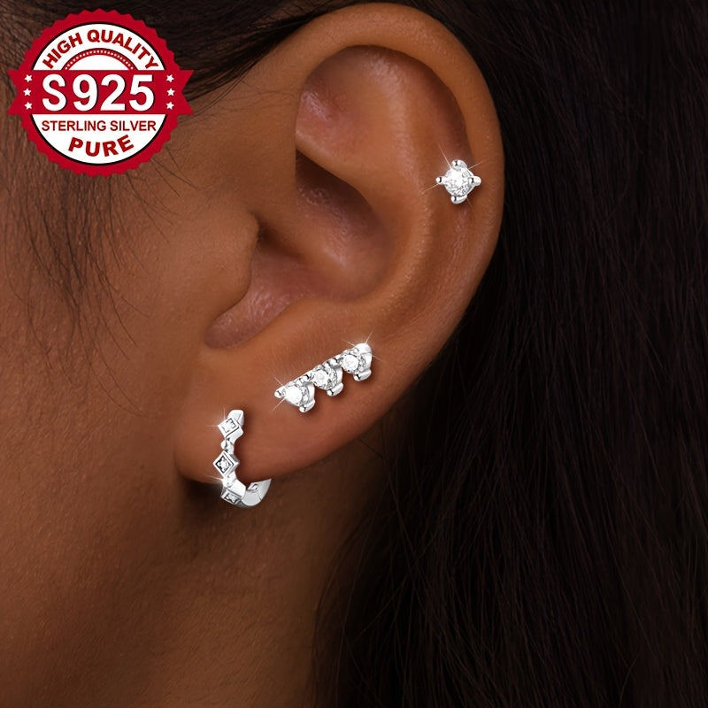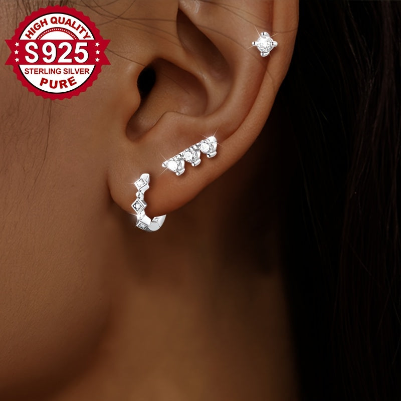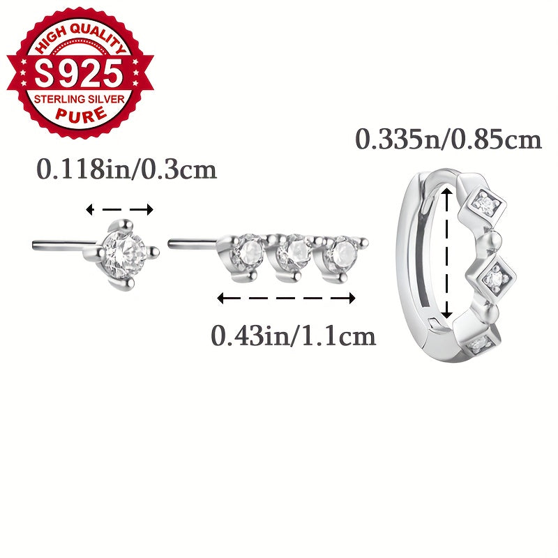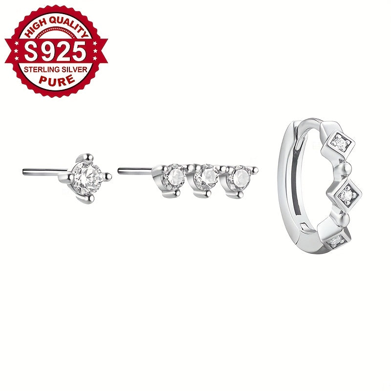 S925 Silver Three-Piece Earring Set - Daily Wear Work Jewelry