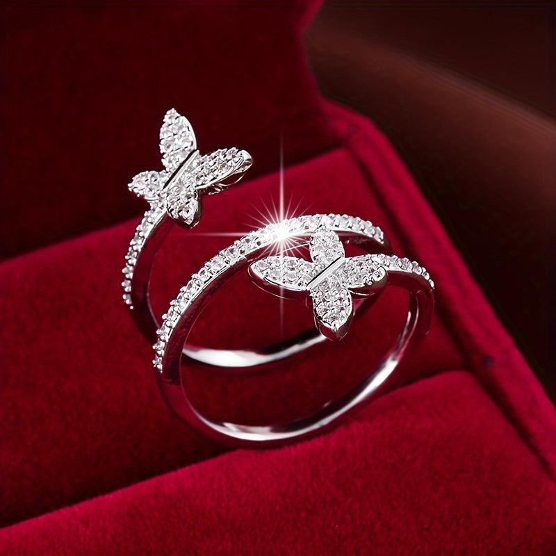 Sexy Butterfly Wrap Ring Copper with Zirconia Adjustable Daily Wear