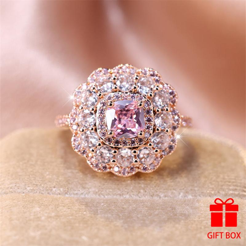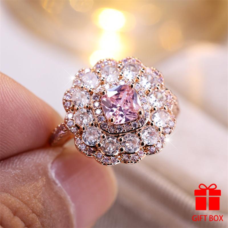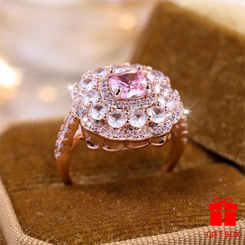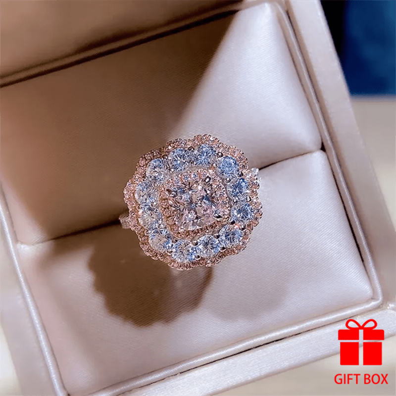 This exquisite snowflake ring features pink synthetic zirconia and opal stones, set in rose golden copper. Perfect for daily wear or as a special gift all year round.