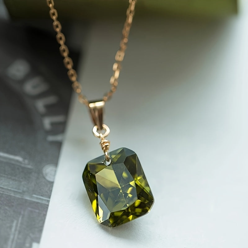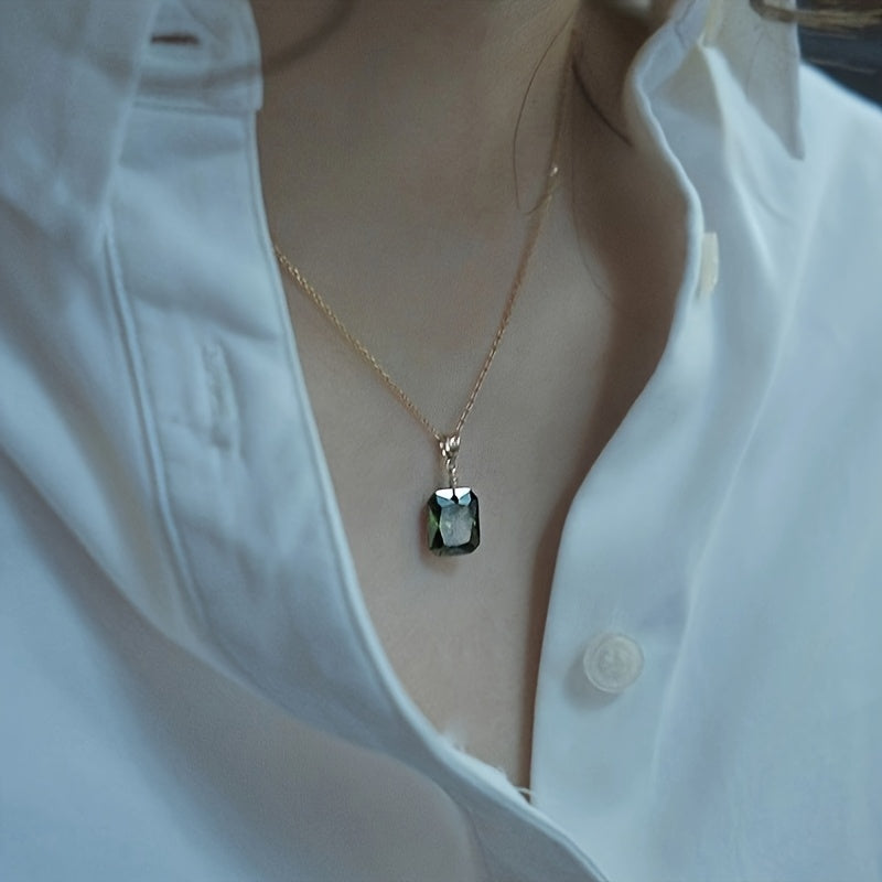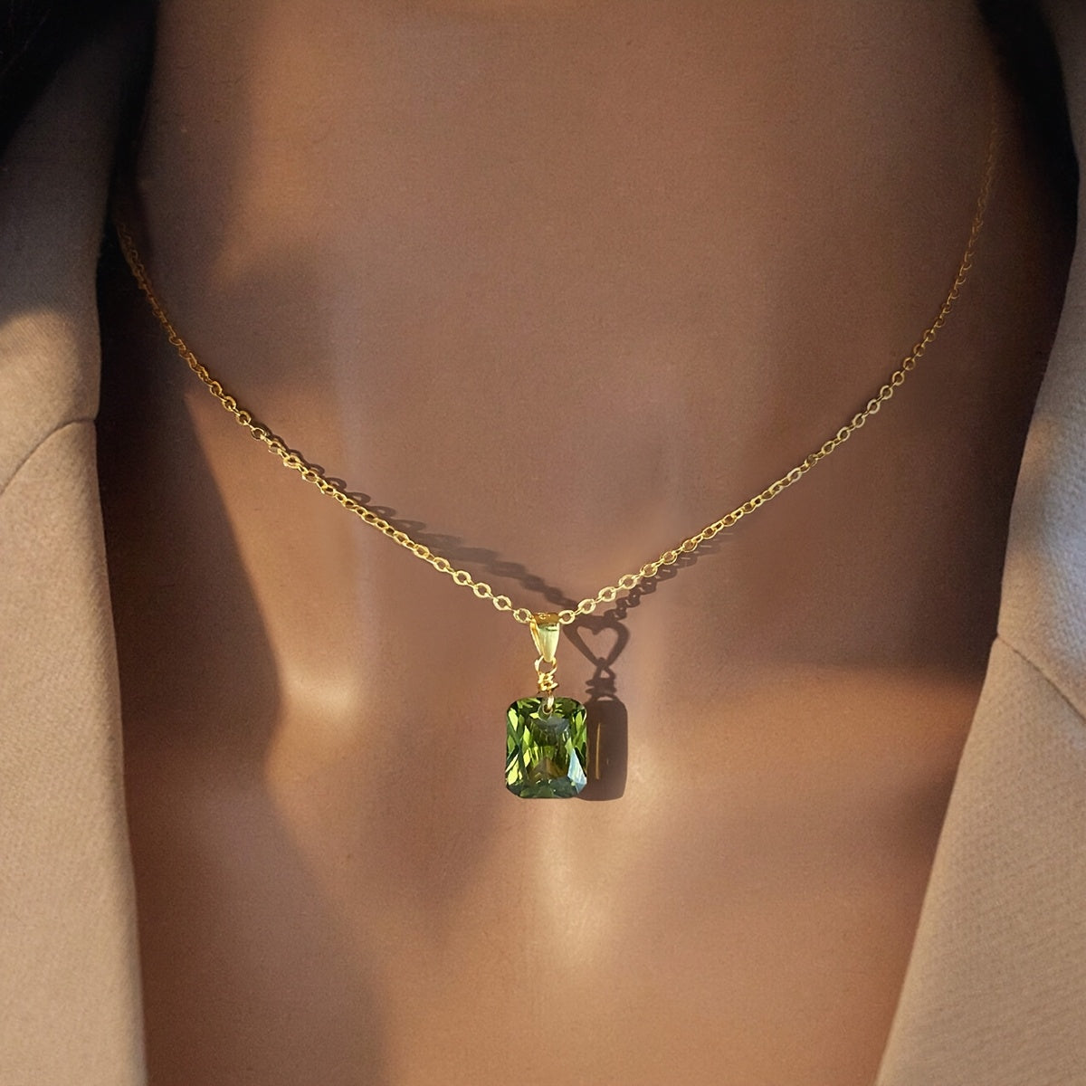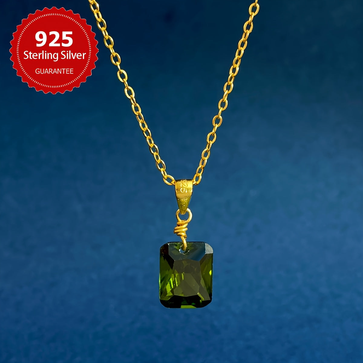 This elegant necklace features a square green pendant on a S925 sterling silver chain, perfect for daily wear or as a thoughtful gift for Mother's Day, Thanksgiving, or birthdays.