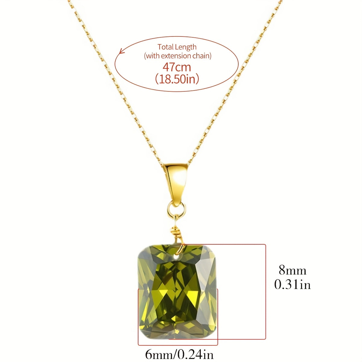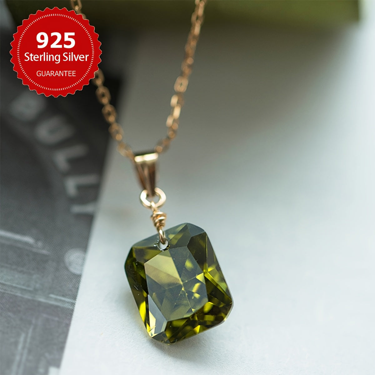 Square Green Women's S925 Sterling Silver Necklace for Daily Wear