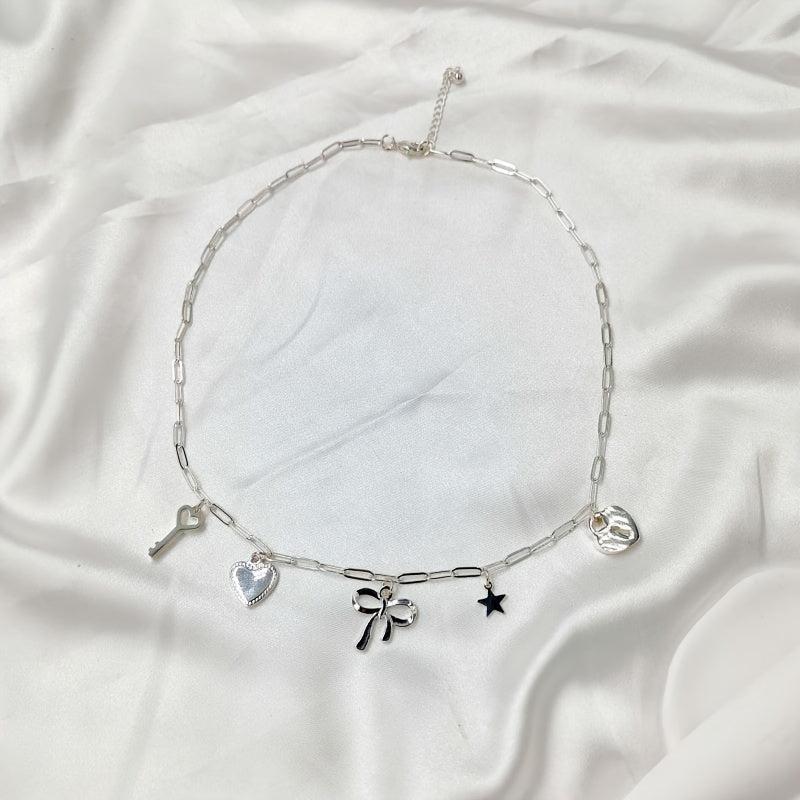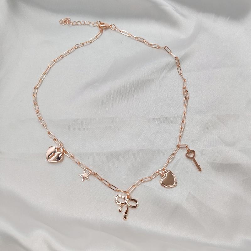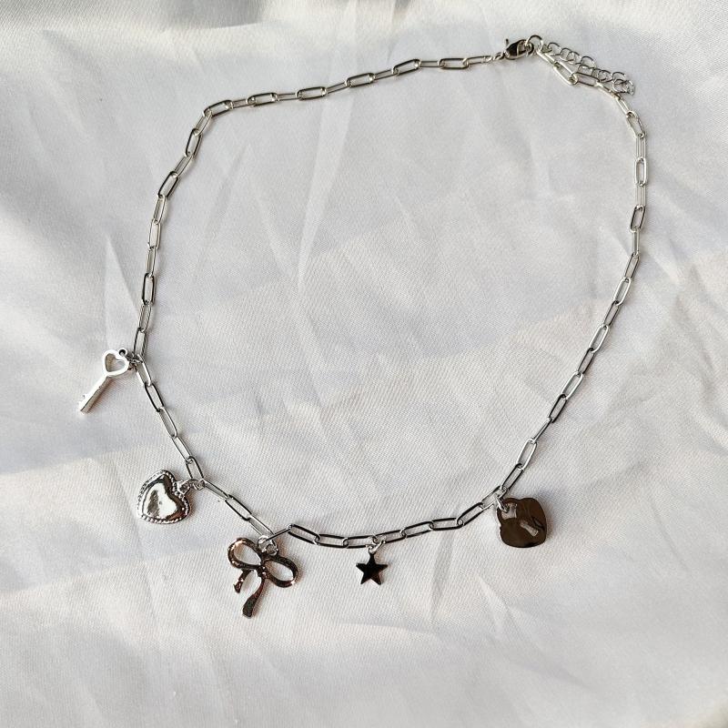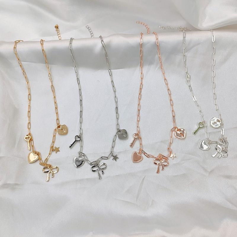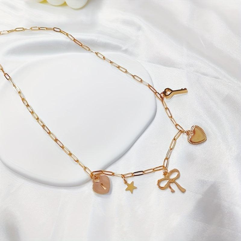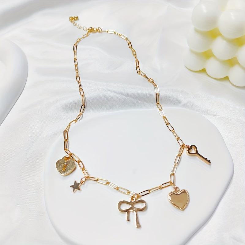 Elevate your style with these French-inspired stainless steel chain necklaces featuring key, heart, bow, and butterfly charms. Perfect for daily wear and gifting.