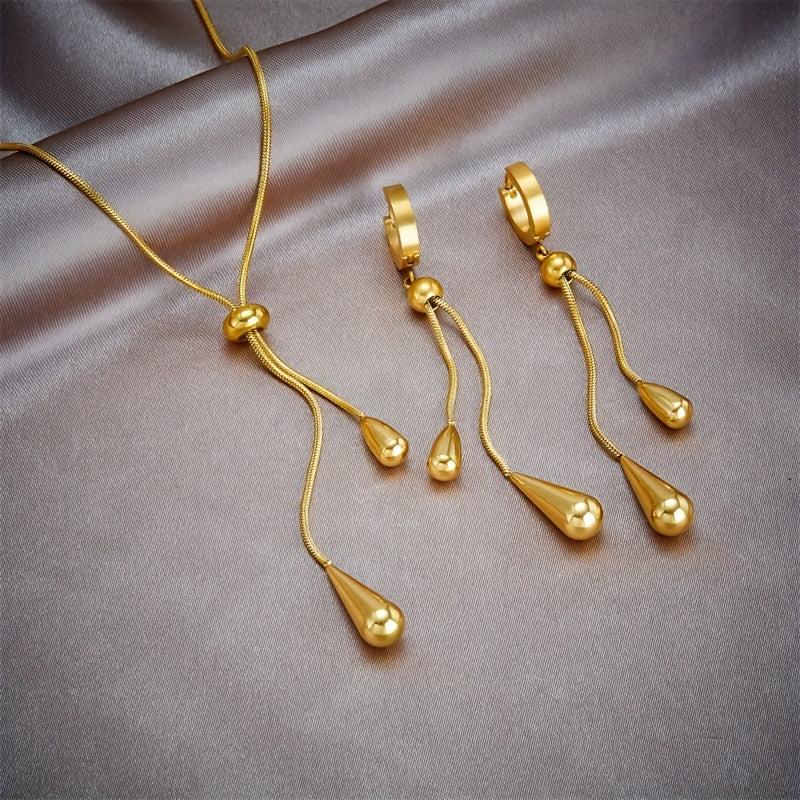 Stainless Steel Jewelry Set Women Necklace Earrings Tassel Pendant